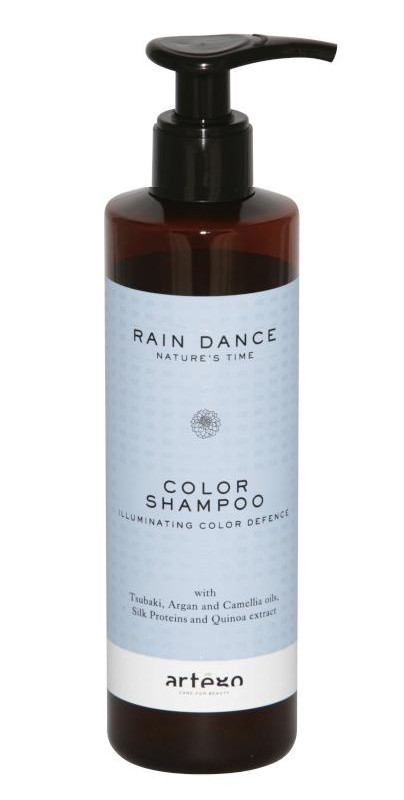 Rozjasňující krémový šampon Artégo Rain Dance Color Shampoo umožňuje déle uchovat intenzitu barvy a zvyšuje její lesk. Vyživuje vlasy a obnovuje jejich přirozenou měkkost. Obsahuje přírodní výtažky z quinoi, aktivní složku ipstic, změkčující oleje a hedvábné proteiny, které chrání a udržují barvu.