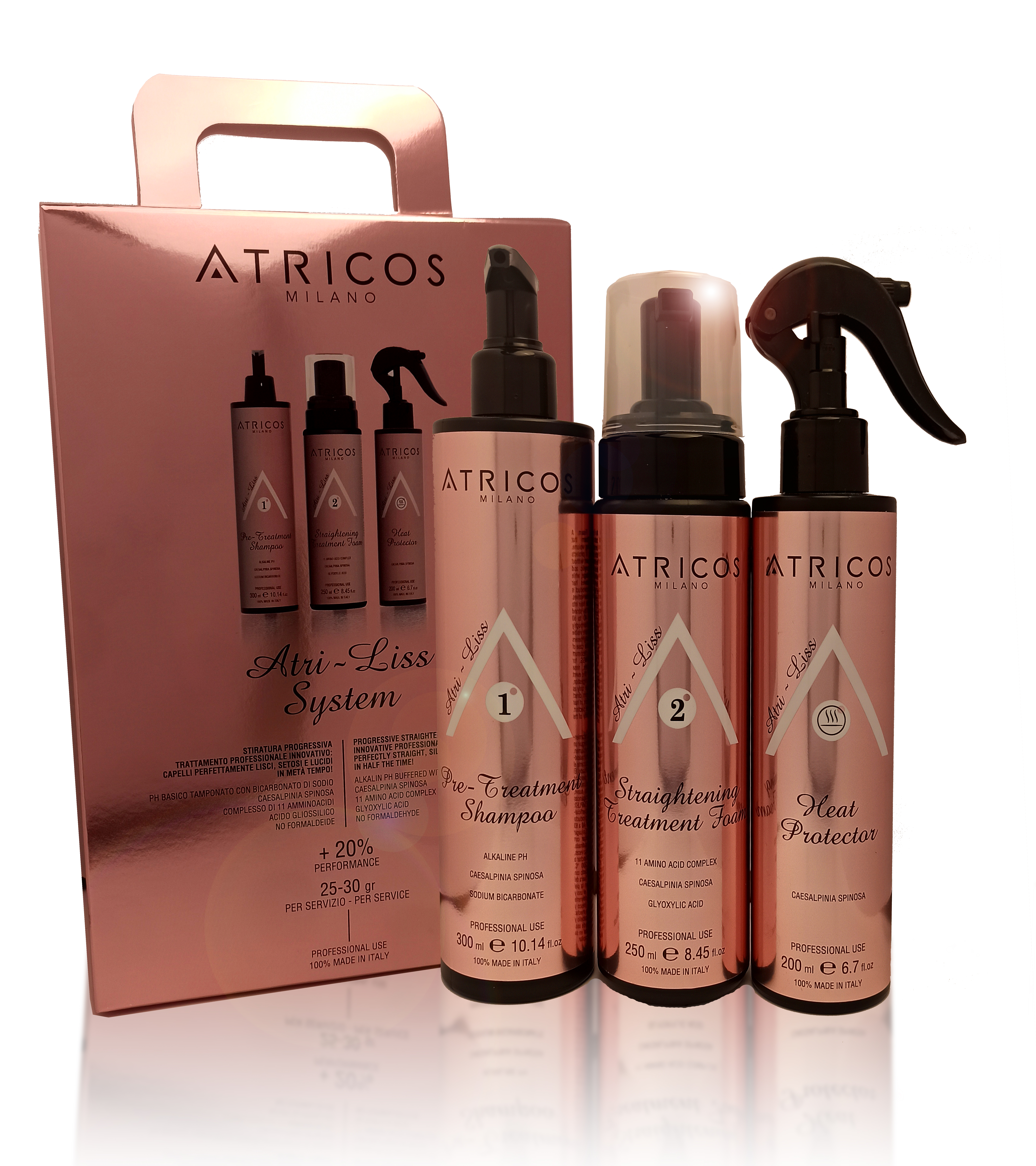 Atri-Liss System je inovativní profesionální ošetření, které poskytuje vysoce výkonné, bezchybné, progresivní narovnání za poloviční dobu než tradiční ošetření. Sada obsahuje tři produkty pro perfektní výsledek. Ošetření navržené a formulované laboratořemi Atricos Milano speciálně pro nejnáročnější profesionály poskytuje +20% narovnávací sílu s rychlou aplikací a vynikající ochranou vlasů.