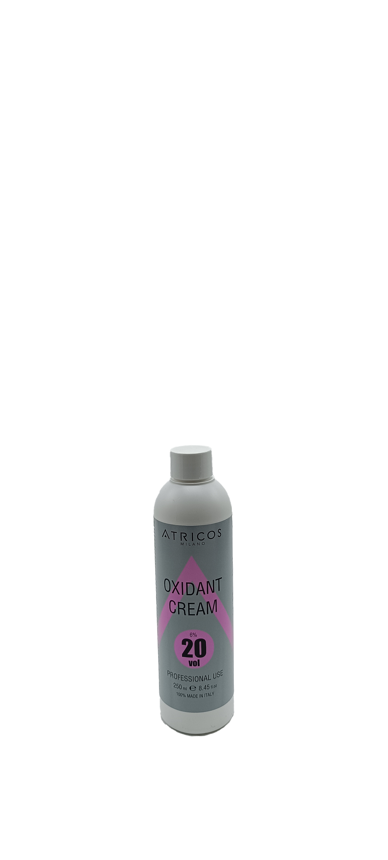 Emulgovaný peroxid vodíku 20 Vol, 6% s neinvazivní oxidační vlastností. Tekutá a krémová konzistence. Nezbytný pro přípravu barev a zesvětlujících produktů Atricos.
