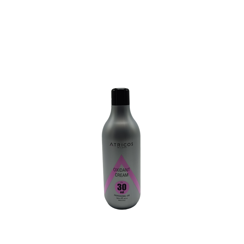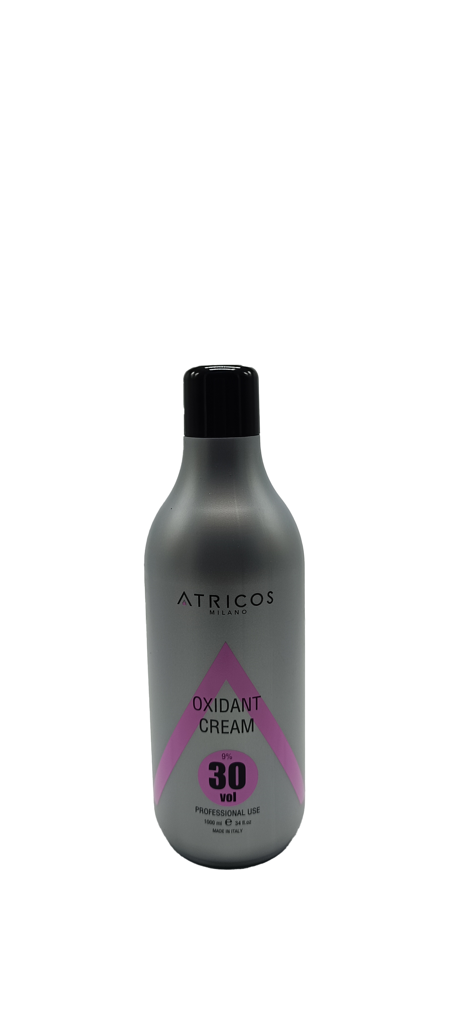 Emulgovaný peroxid vodíku 30 Vol, 9% s neinvazivní oxidační vlastností. Tekutá a krémová konzistence. Nezbytný pro přípravu barev a zesvětlujících produktů Atricos.
