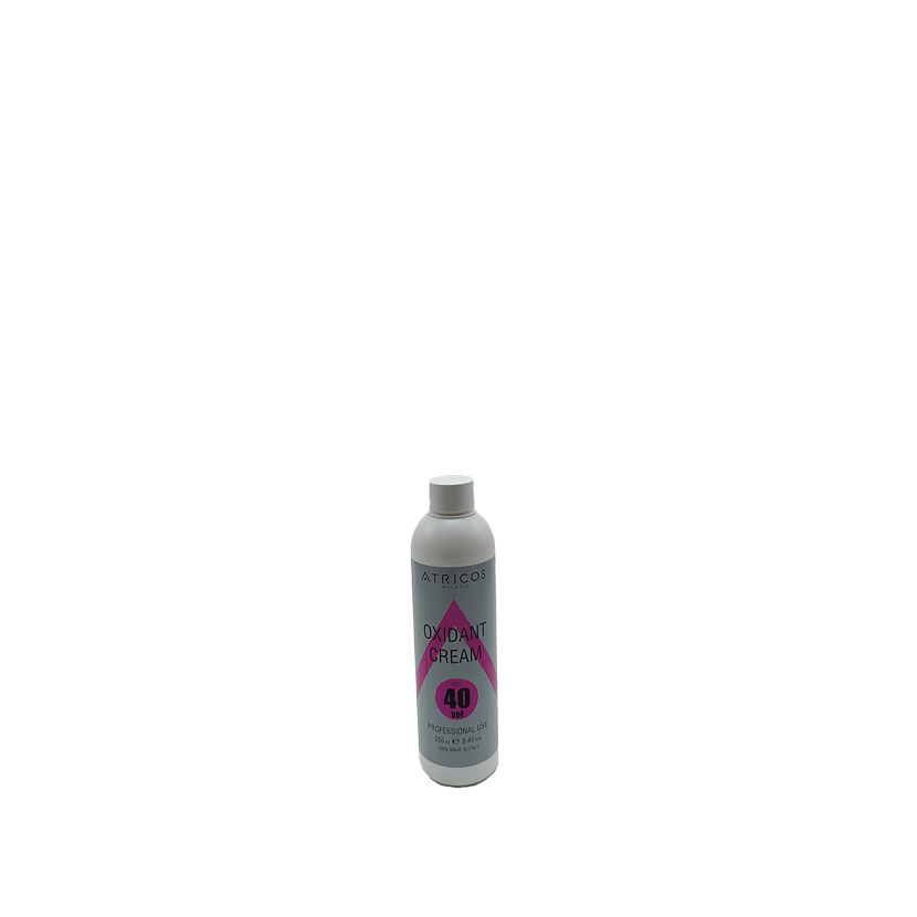 Emulgovaný peroxid vodíku 40 Vol, 12% s neinvazivní oxidační vlastností. Tekutá a krémová konzistence. Nezbytný pro přípravu barev a zesvětlujících produktů Atricos.
