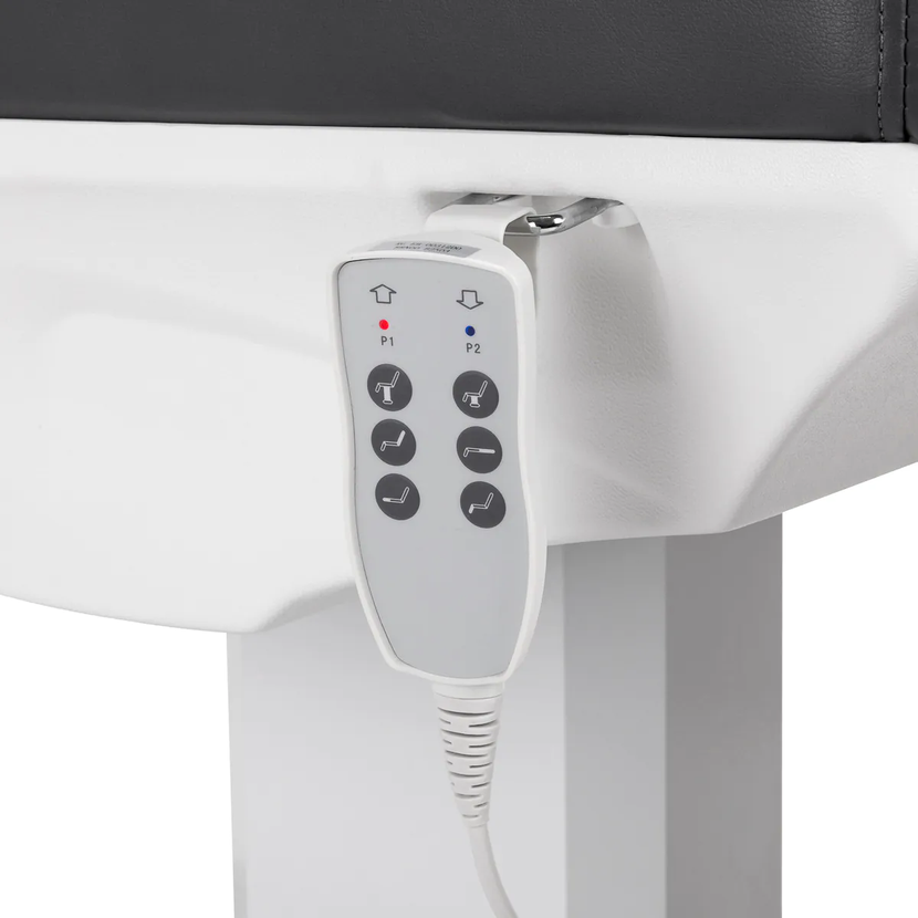 Elektrické kosmetické křeslo Azzurro 803D je vybaveno třemi pohony ovládanými kabelovým dálkovým ovladačem nebo přiloženým nožním ovladačem. Vyznačuje se stabilitou, značnou možností individualizace a univerzálností , takže se skvěle hodí do mnoha kosmetických salonů.