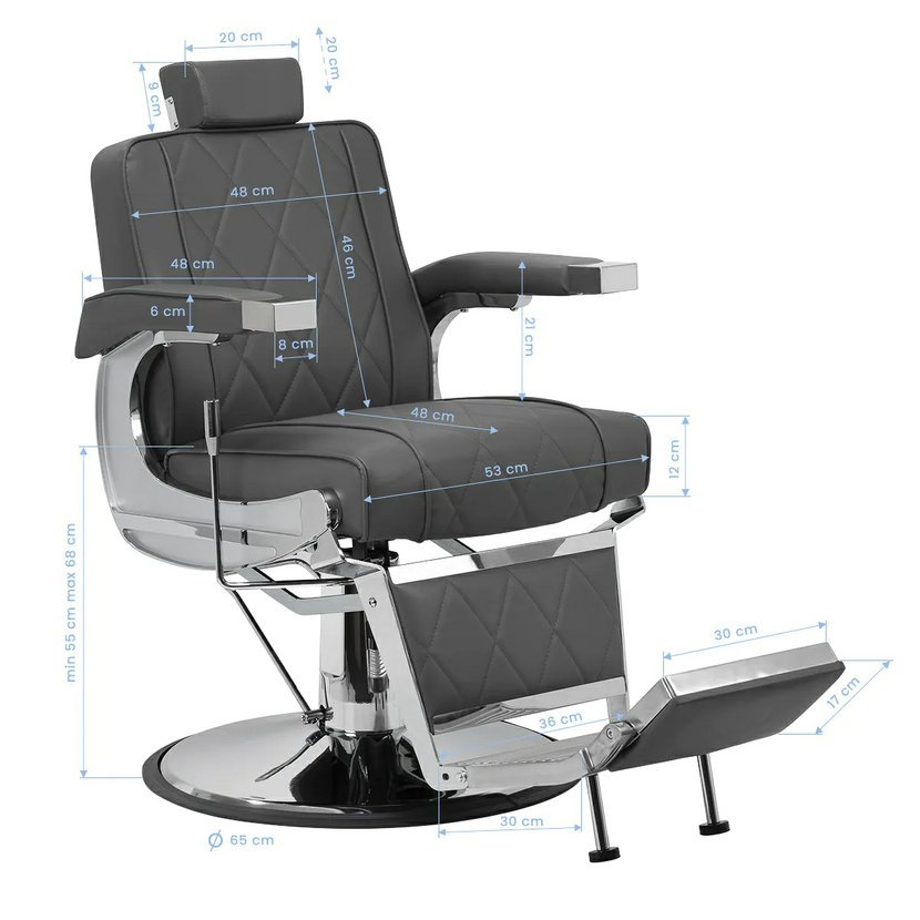 Jedná se o moderní, dokonale zpracovaný kus nábytku, který zákazníkovi, který navštíví Váš barber salon dopřeje maximální pocit pohodlí při prováděných ošetřeních. Křeslo má kromě seřízení nahoru-dolů sklopné opěradlo, polohovatelnou podnožku a opěrku hlavy. I přes malé rozměry je možné klienta umístit do pohodlné, polohovatelné polohy. Pohodlné sedadlo je potaženo kvalitní ekokůží.