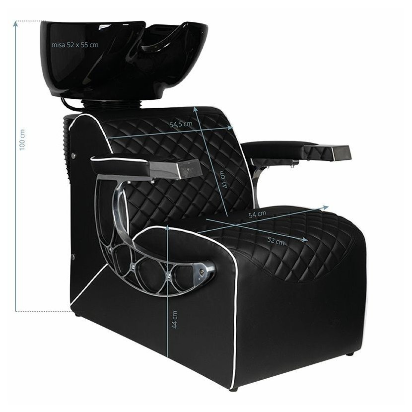 Gabiano Barber mycí box Simone se vyznačuje kvalitní povrchovou úpravou, čalouněním z dokonalé ekologické kůže. Základnou tohoto mycího boxu je laminátový, pevný podstavec, který nepodléhá korozi. Je osazen keramickou mísou s naklápěním. Mísa je osazena baterií a sprchou. Na zadní straně je mycí box osazen servisními dvířky pro jednoduché napojení vody a odpadu. Stylový mycí box pro holičství nebo barber shop.