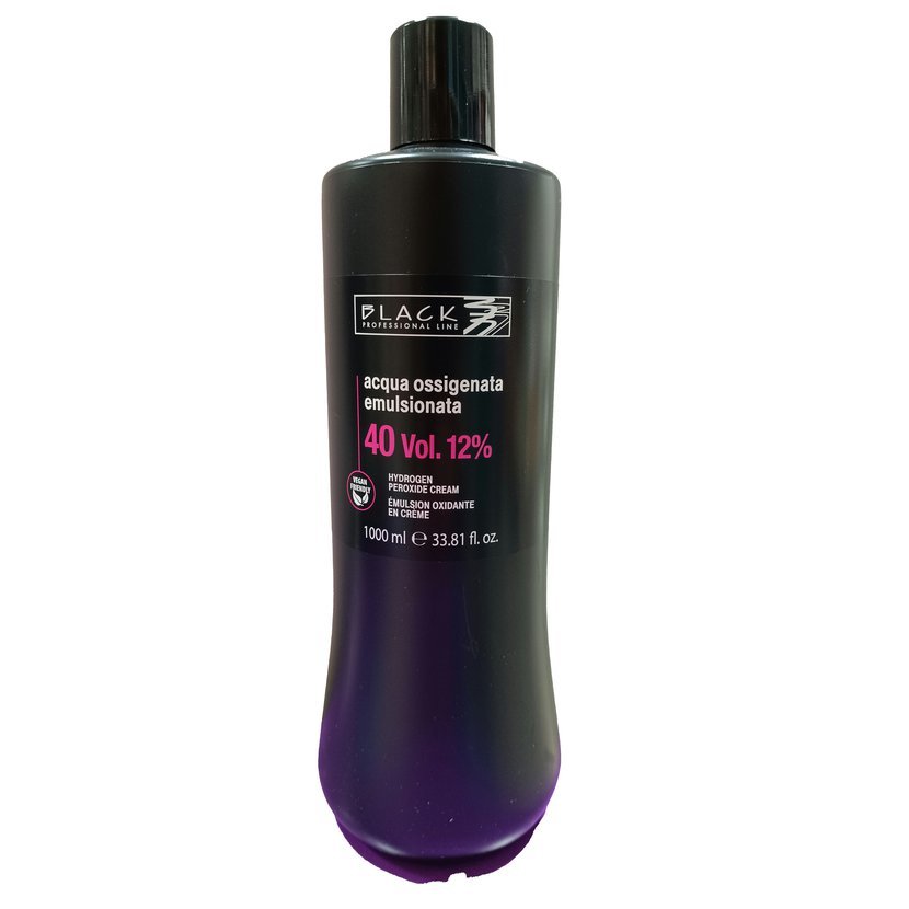 Peroxid vodíku v emulzi od značky Black. Krémová konzistence tohoto výrobku zaručuje snazší použití, zabraňuje problémům se stékáním a je k vlasům šetrnější.