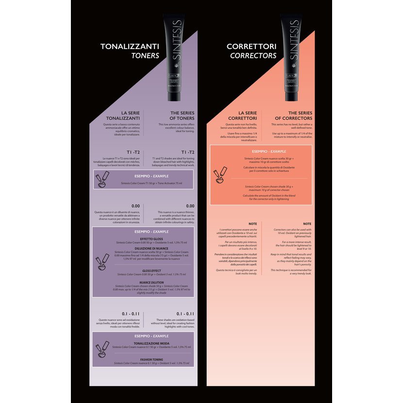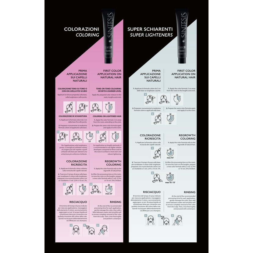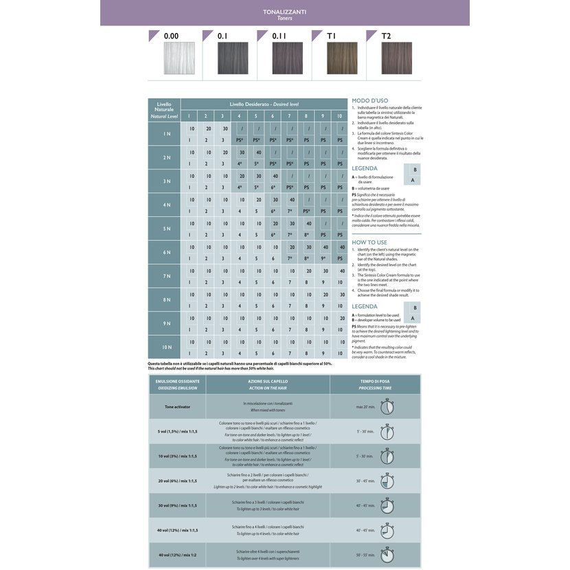 - 1:1,5 při práci s tonery T1, T2, 0.00, 0.1, 0.11 (1 díl barvy + 1,5 díl oxidačního krému),