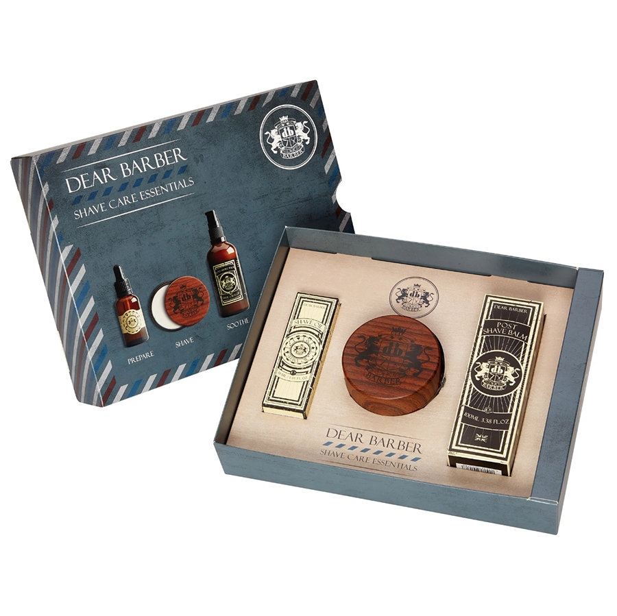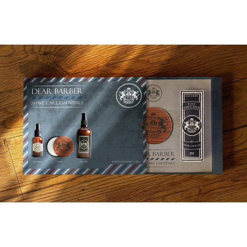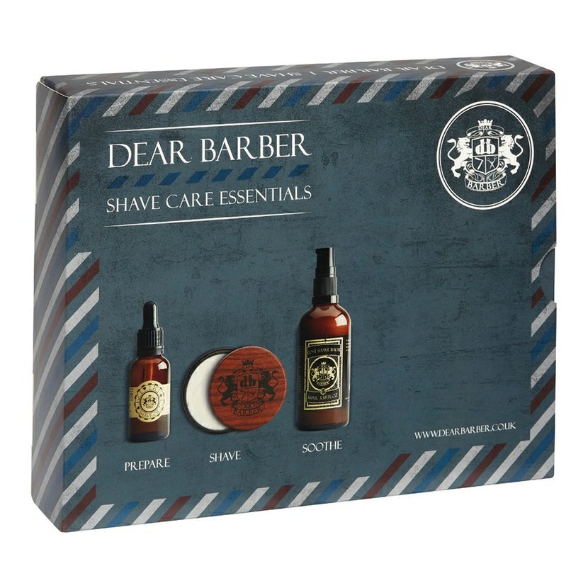 Značka Dear Barber představuje pečující sadu na holení, která obsahuje vyživující olej na holení, zvlhčující krém na holení a zklidňující a hydratační balzám po holení. S vůní bergamotu, pižma, jantaru a vanilky.