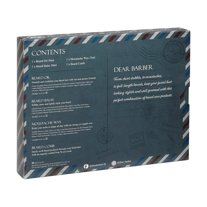 Značka Dear Barber představuje pečující sadu, ve které naleznete olej a balzám na vousy, vosk na knír a dřevěný hřeben na úpravu vousů. S vůní bergamotu, pižma, vanilky a jantaru.