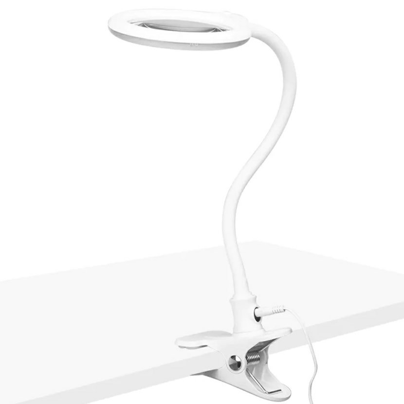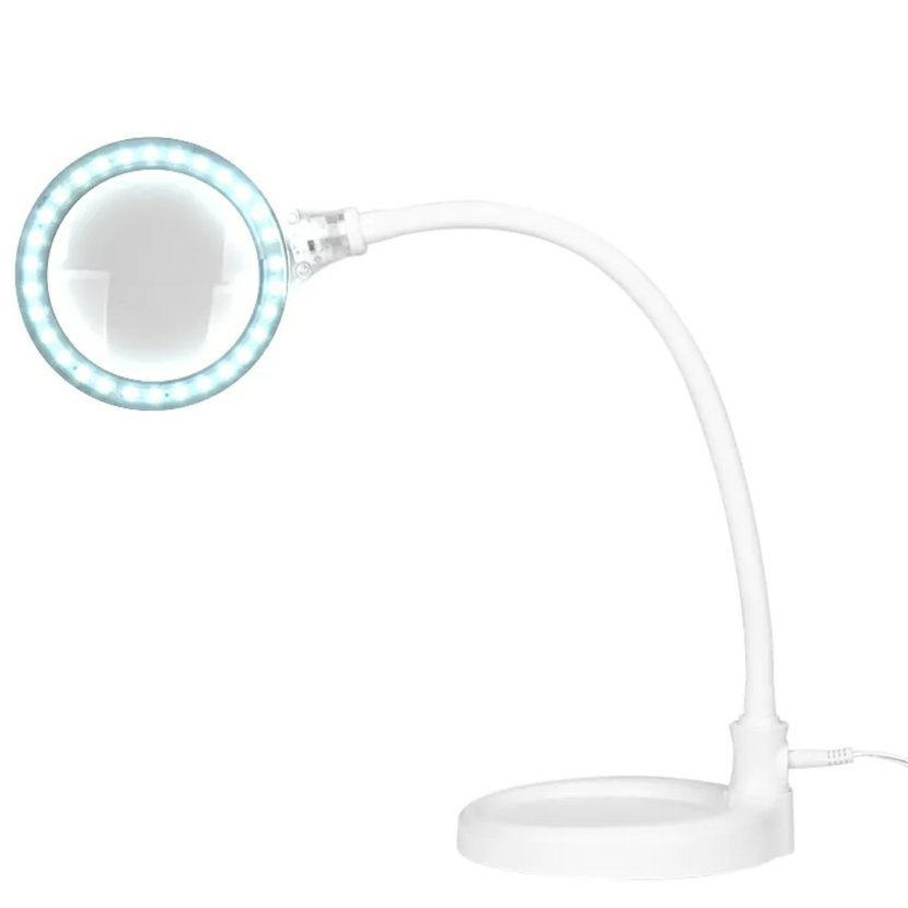 Elegante 2014-2r lampa s lupou, 30 LED SMD, 5D, se stojánkem a sponou na stůl, bílá