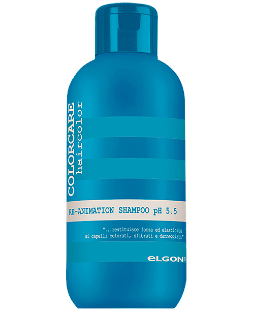 Elgon Re-Animation Shampoo je šampon určený pro ošetření silně narušených, vyčerpaných a často chemicky zatěžovaných vlasů. Používá se pravidelně po barvení nebo odbarvování, obnovuje strukturu vlasu, zaručuje kvalitu a trvanlivost výsledného barvení. Jeho pH pomáhá upevnit barvu na vlasech. Kromě jiného obsahuje hydratant Provitamín B5 a deriváty z kolagenu, které dodávají jas. Dále obsahuje ochranný vodě odolný sluneční filtr, chránící pigmenty před vlivem UV záření.