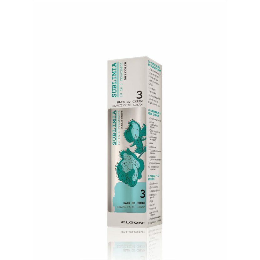 Elgon Sublimia DD Cream 10in1 je multifunkční bezoplachový krém obohacený o řadu aktivních látek, které poskytují 10 benefitů. Zklidňuje vlasy, působí proti stárnutí, usnadňuje úpravu, chrání před teplem, dodává lesk a hydrataci, chrání před UV zářením, usnadňuje rozčesávání a chrání barvu před vyblednutím.