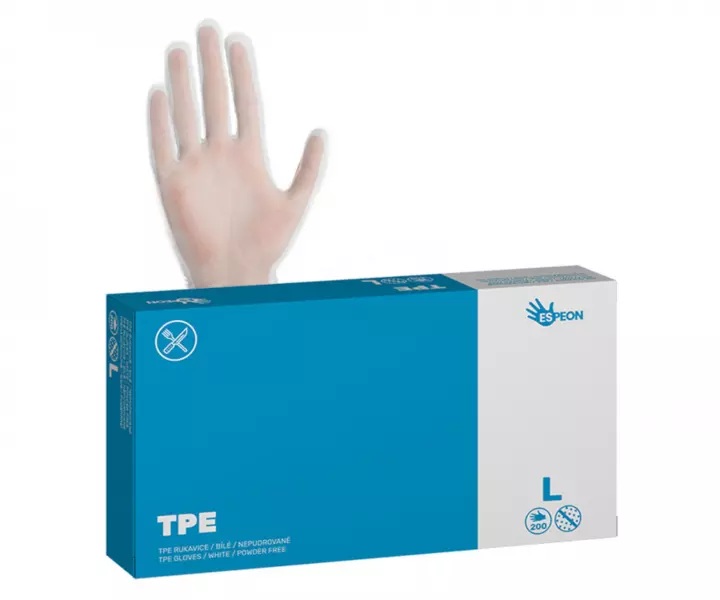Ochranné TPE rukavice Espeon TPE AllFood představují vysoce kvalitní ochranné pomůcky pro širokou škálu profesionálních i domácích použití. Toto balení obsahuje 200 kusů nepudrovaných bílých rukavic, které jsou navrženy tak, aby poskytovaly maximální komfort a ochranu. Jsou vyrobeny z elastomerové a polyetylenové pryskyřice, neobsahují latex ani pudr a díky tomu nezpůsobují alergické reakce. TPE rukavice mají skvělou odolnost proti tekutinám. Disponují vysokou pružností, umožňují natažení až na 5 násobek své původní délky. Rukavice se díky volnému střihu snadno a rychle nasazují, dobře se přizpůsobují ruce a mají zdrsněný povrch celé rukavice pro lepší úchop a dlouhodobé pohodlí při nošení. Rukavice jsou vhodné k použití v potravinářství, salonech krásy, zdravotnictví, k úklidu i pro jemnou práci. Rukavice nejsou vhodné pro kontakt s velmi horkými předměty a nezajišťují ochranu proti chemickým rizikům.