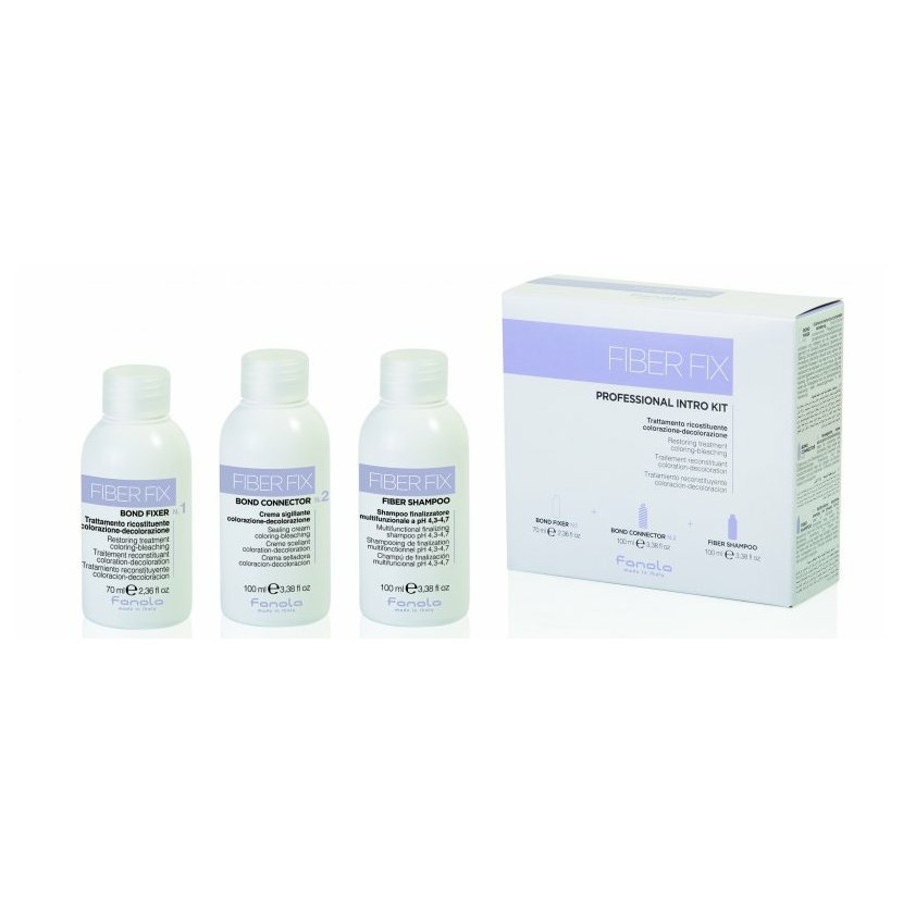 Fanola Fiber Fix sada obsahuje: Bond Fixer 70 ml + Bond Connector 100 ml + Fiber Shampoo 100 ml