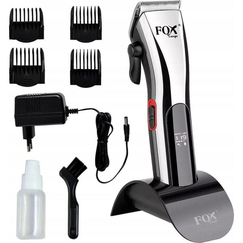 Profesionální ergonomický strojek na vlas Fox Tango s odnímatelným nerezovým břitem (0,8 mm, 1,1 mm, 1,4 mm, 1,7 mm, 2 mm) a akumulátorovým provozem. Strojek je vybaven LCD displejem, který indikuje stav nabití a nutnost olejování čepele. Uvnitř strojku naleznete lithiovou baterii, která poskytuje až 120 minut bezdrátového provozu. Doba nabíjení je 90 minut.