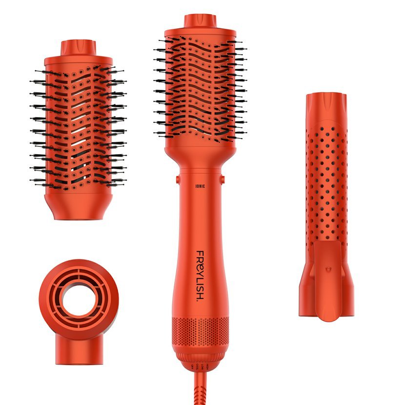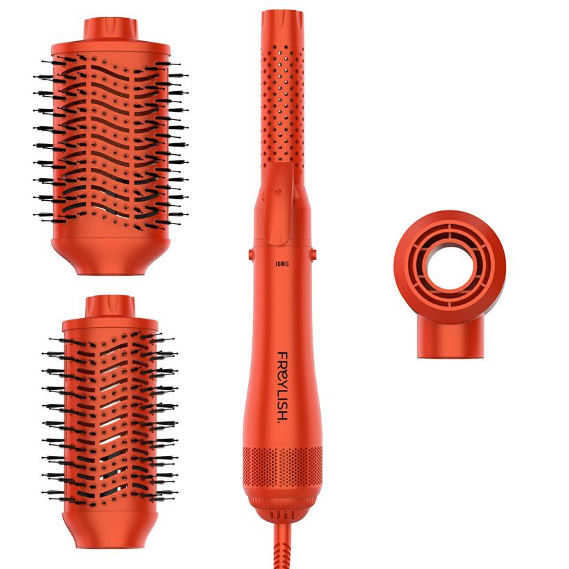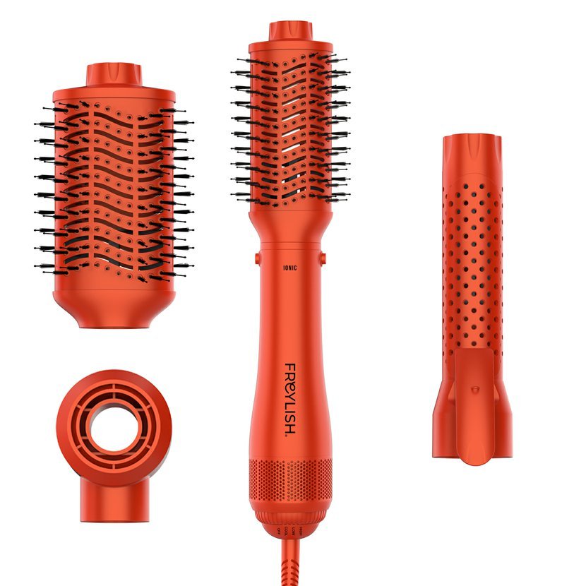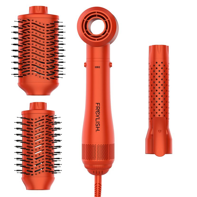 Značka Freylish představuje multifunkční horkovzdušný ionizační kartáč 4v1 Ionic Brush, který kombinuje sušič vlasů, kulmu a dva stylingové kartáče v jednom praktickém zařízení. S výkonem 1200 W a výkonným DC motorem umožňuje rychlé a efektivní vysušení vlasů, vytvoření objemu i dlouhotrvajících vln přímo z pohodlí domova.