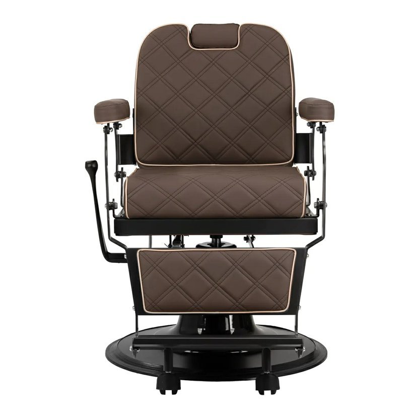 Barber křeslo Gabbiano Carlos. Nabízíte-li ve Vašem salonu péči o vousy nebo kompletní barbers služby, nabízíme Vám perfektní kus nábytku pro barbery. Barbers křeslo Carlos je vytříbeným designovým kouskem v naší nabídce. Je komfortní, má široký rozsah nastavení a zajistí maximální pohodlí jak klientovi salonu, tak holiči. Model je vybavený účinným hydraulickým zdvihem, nastavitelným opěradlem a podhlavníkem. Křeslo disponuje také podnožníkem. Jedná se o krásné křeslo a je ideálním tipem do barber salonu.