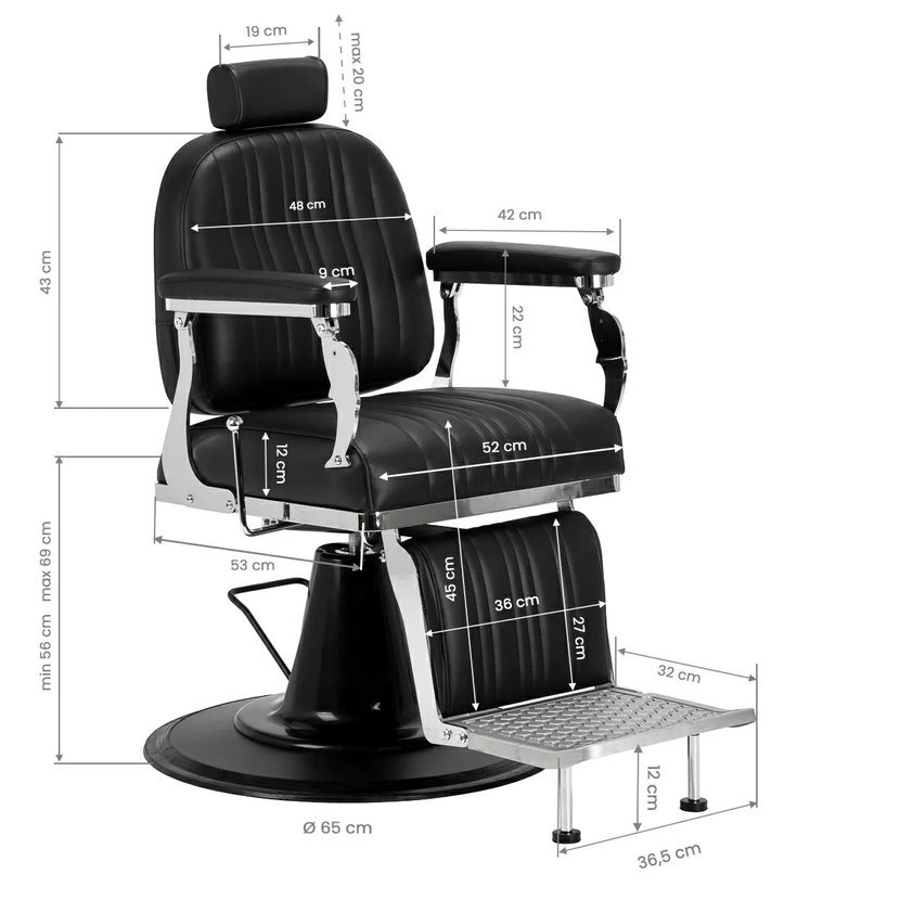 Pohodlné křeslo s širokou škálou úprav poskytne maximální pohodlí jak osobě provádějící ošetření, tak klientovi salonu. Můžeme nastavit nejen výšku křesla. Můžeme pohodlně nastavit sklon opěradla, výšku podhlavníku, podnožník. Křeslo je nejen pohodlné a snadno se nastavuje, ale také má design, který dokonale zapadne do interiéru ve starém stylu. I ty nejmenší detaily jsou vyrobeny s velkou přesností. Krásné čalounění s originální texturou. Vysoce kvalitní ekologická kůže, odolná proti oděru a snadno se o ni stará. Těžká základna poskytuje křeslo dokonalou stabilitu i při vysokém zatížení.