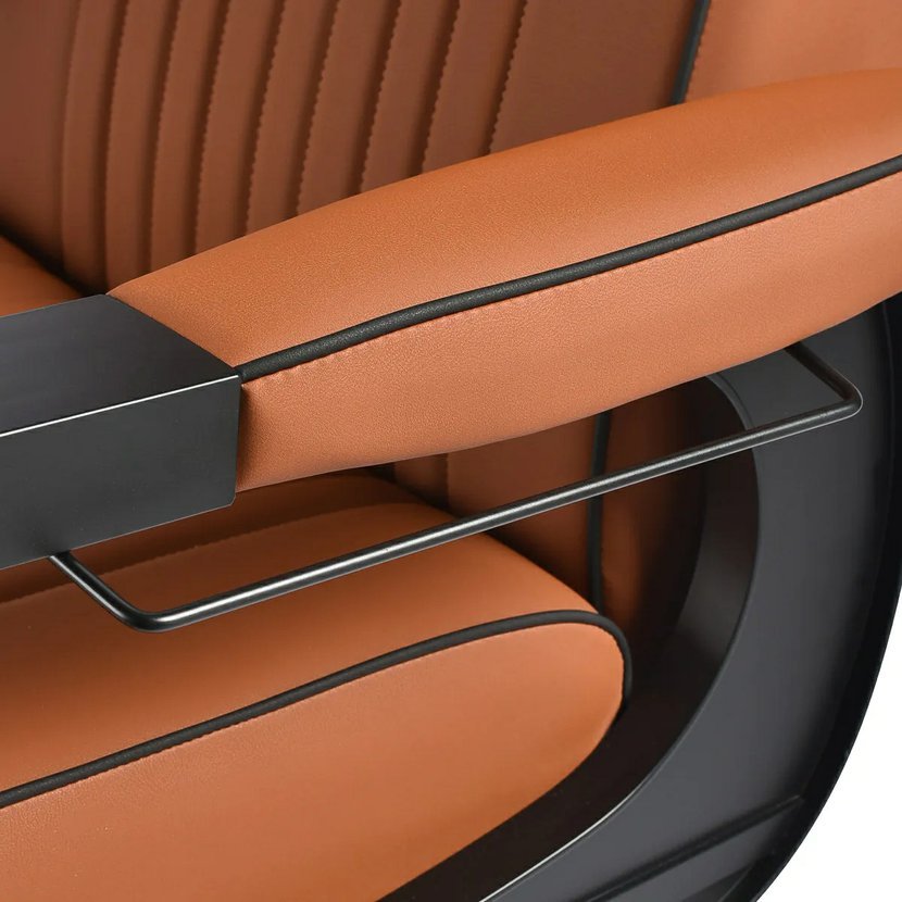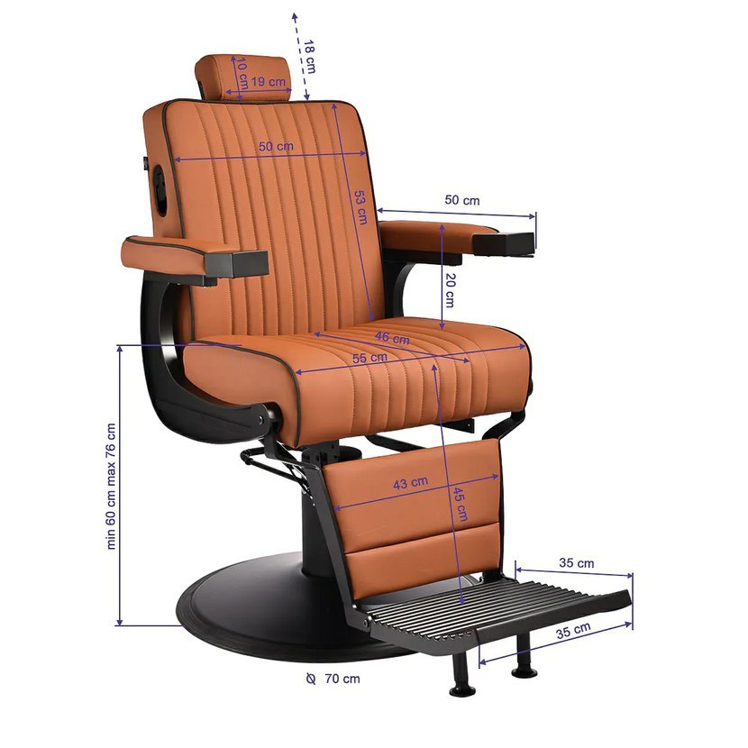 Nabízíme Vám holičské, barber křeslo Levi kombinující originální styl s funkčním řešením. Velmi oblíbený model barber křesla, které splňuje ty nejvyšší požadavky barberů. Čalounění je vyrobeno z vysoce kvalitní ekologické kůže. Konečně se nemusíte vzdávat poutavého nábytku díky jeho barvě. Moderní kus nábytku vybavený účinným hydraulickým zdvihem, nastavitelným opěradlem a podhlavníkem. Křeslo disponuje také podnožníkem. Bohaté možnosti nastavení umožňují dokonalé přizpůsobení křesla k prováděným ošetřením, což výrazně zvyšuje komfort služeb. Estetické provedení učiní z křesla ozdobu každého holičského salonu a jeho vysoká funkčnost zajistí komfort a efektivitu práce.