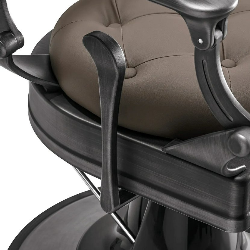 Pevná konstrukce základny zajišťuje stabilitu a vysoký komfort používání. Výplň sedáku z odolné pěny odolné proti deformaci a čalounění z na dotek příjemné syntetické kůže s lesklou povrchovou úpravou zajišťují odolnost nábytku a jeho pohodlné používání po dlouhou dobu. Díky nim je zařízení také odolné proti vlhkosti a snadno se čistí. Potah s prošíváním a ozdobnými knoflíky mu dodává jedinečný charakter. Křeslo s výrazným vintage designem dokonale zapadá do atmosféry holičství a podtrhuje jejich jedinečnou atmosféru.