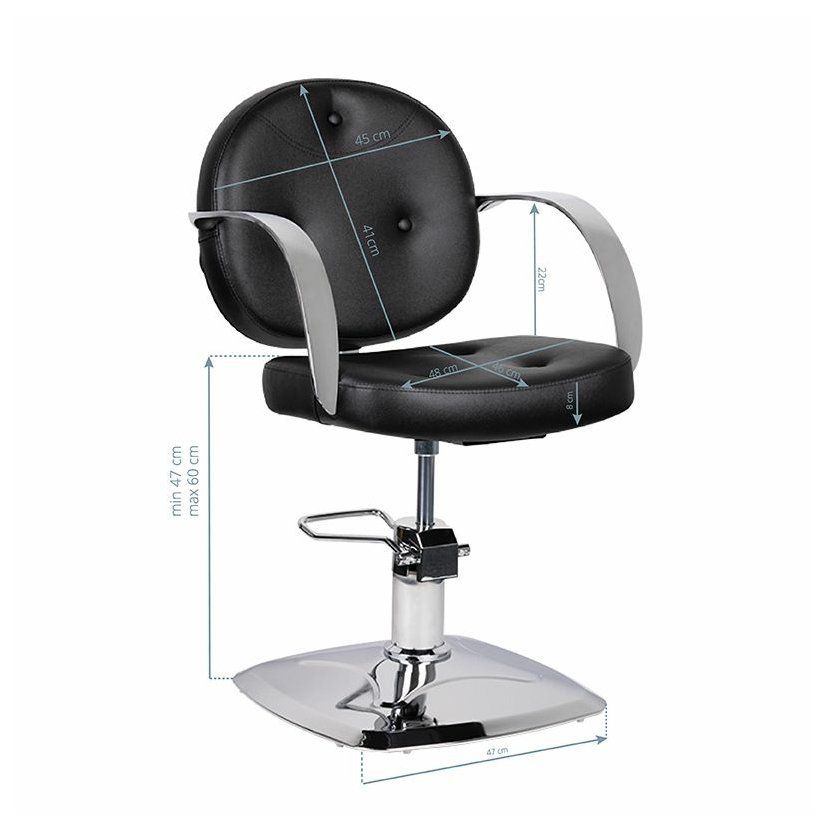 Stylové kadeřnické křeslo. Velmi pohodlné křeslo, ideální pro interiéry elegantních salónů. Nastavitelné ve svislé rovině. Velmi stabilní a pevné. Potah je vyroben z ekokůže nejvyšší kvality. Hydraulická báze pro komfortní zdvih klienta.