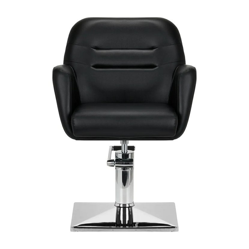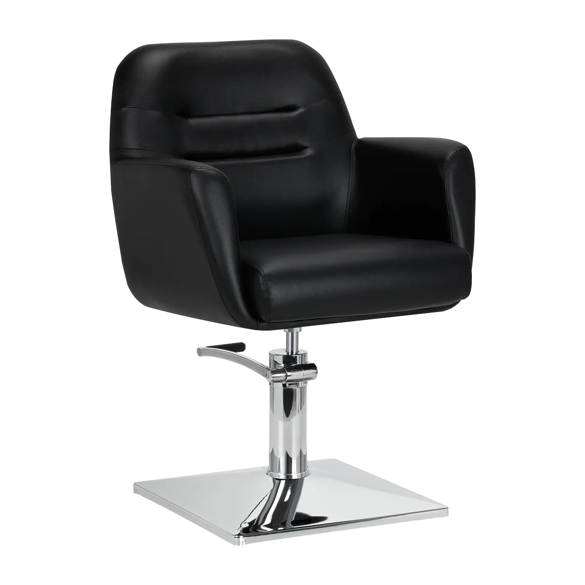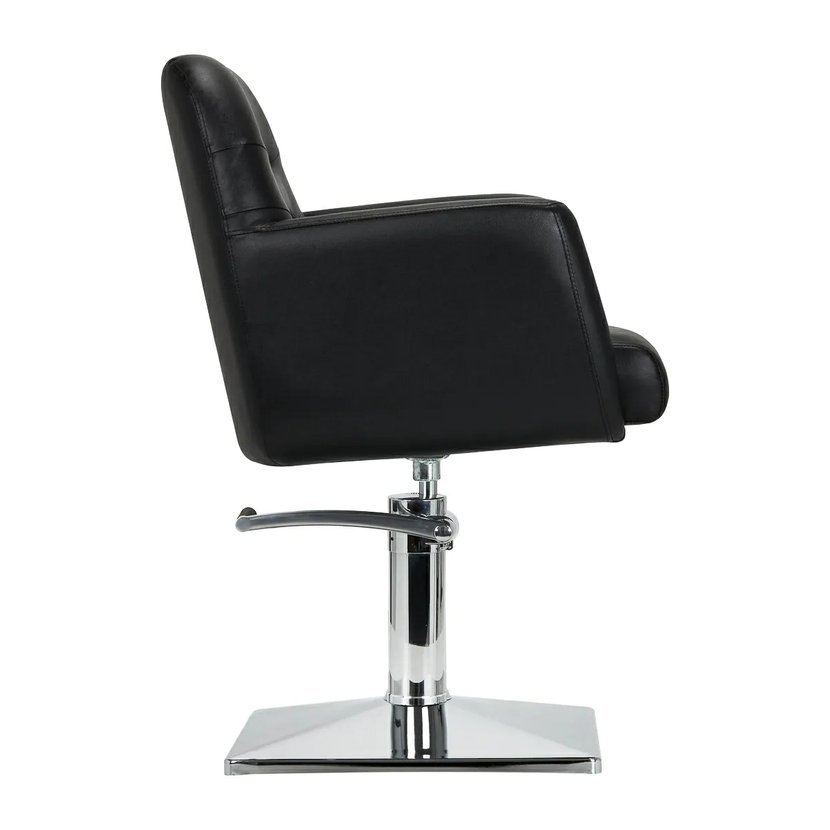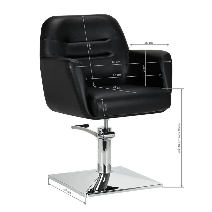 Kadeřnické křeslo Monaco stylové kadeřnické křeslo, které je velmi pohodlné, perfektně se hodí do interiérů elegantních kadeřnických salonů. Elegantní prošití knoflíky působí velmi efektně. Křeslo lze nastavit ve svislé rovině pomocí hydraulické báze. Křeslo je velmi stabilní a pevné. Díky čalounění z černé ekokůže je u křesla snadná údržba. Čtvercová základna z kvalitní oceli Inox doplňuje eleganci této židle.