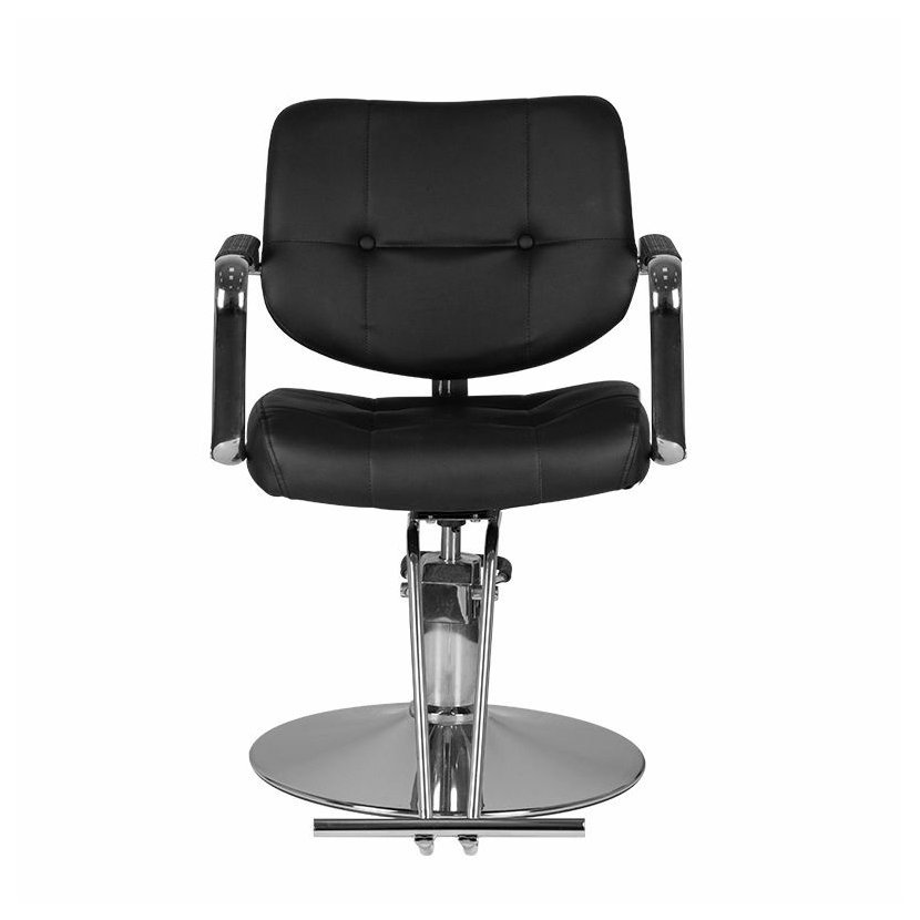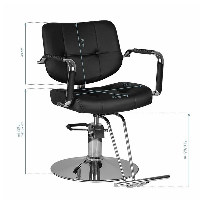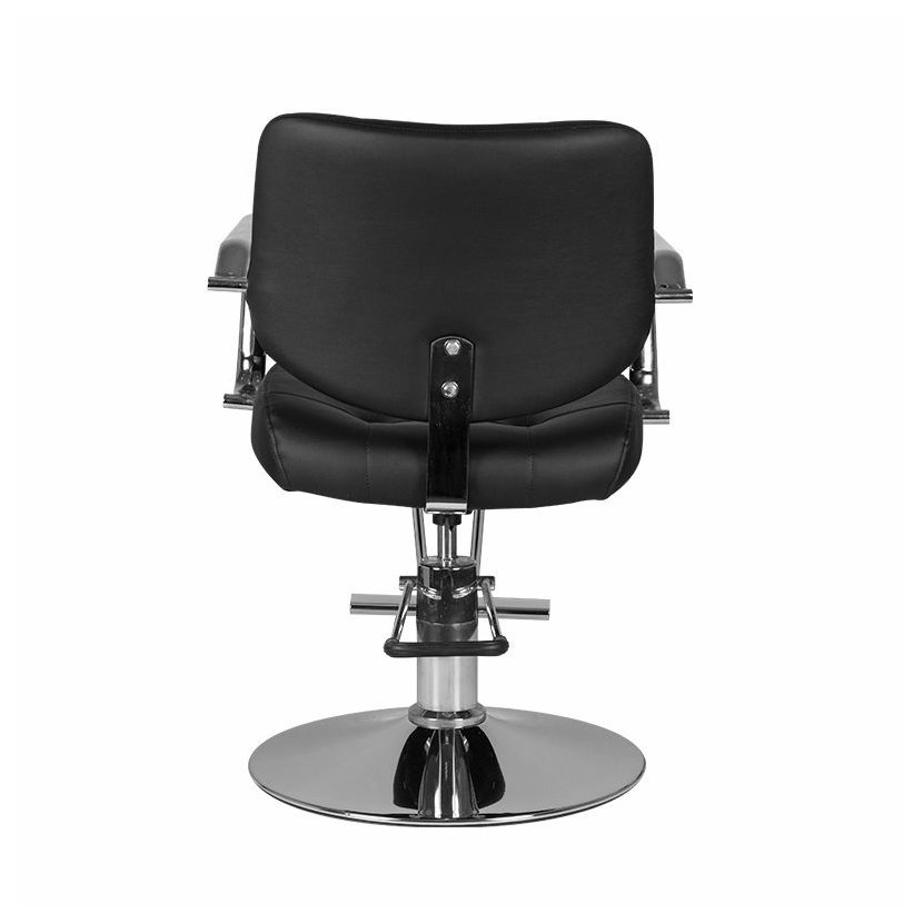 Židle s moderním designem vhodná do holičských a kadeřnických salonů, velmi pohodlná, perfektně doplní vzhled moderního interiéru. Speciálně tvarovaná tak, aby poskytovala klientovi pohodlnou polohu během kadeřnické služby. Nastavitelná ve svislé rovině, stabilní a pevná. Potah je vyroben z kvalitní černé eko kůže, snadno se udržuje v čistotě.