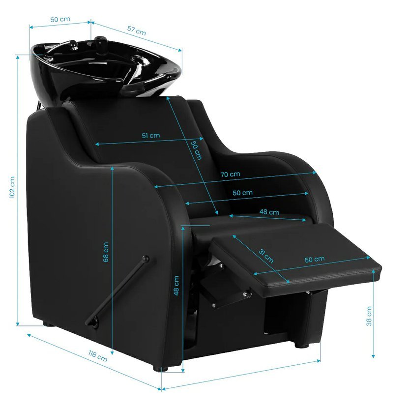 Kadeřnický mycí box Carmen je originální kadeřnický kus nábytku, který v jiném kadeřnickém salonu nenajdete. Jedná se o kus nábytku vyrobený s velkým řemeslným zpracováním a smyslem pro detail. Moderní design v kombinaci s pohodlím. Mycí box perfektně zapadne do moderních interiérů kadeřnického salonu. Kadeřnický mycí box je v černé barvě. Umyvadlo je osazeno sprchou, baterií a odpadem.