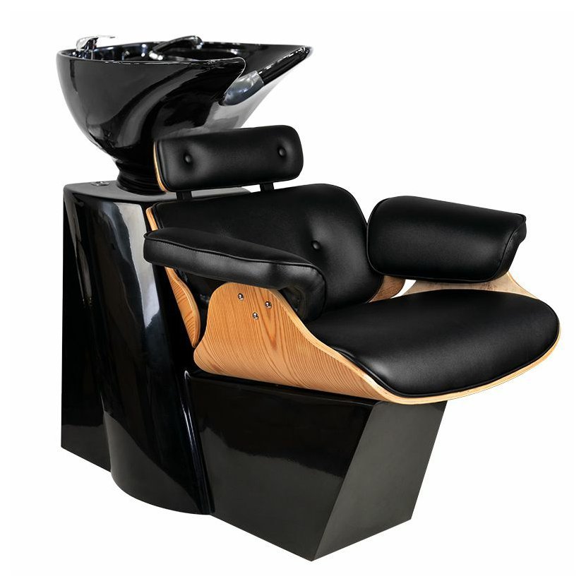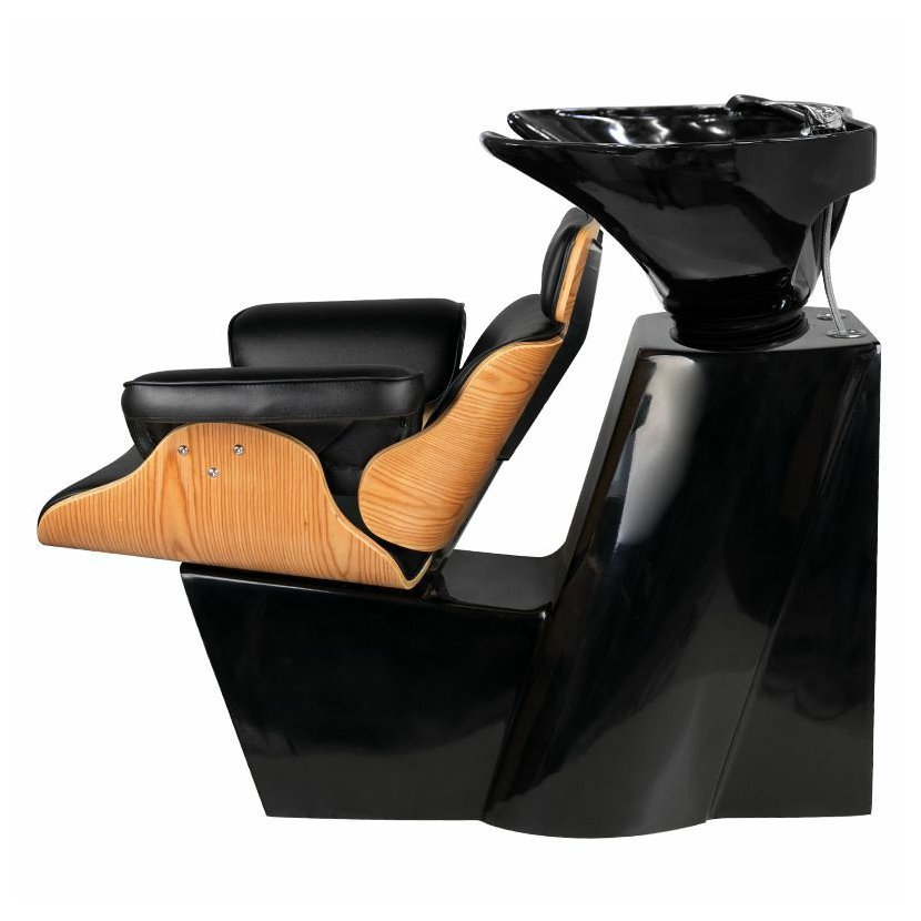 Kadeřnický mycí box Florence černý se světlým dřevem je originální kus kadeřnického nábytku. Při jeho výrobě byla věnována velká pozornost také detailům. Moderní design je zkombinovaný s pohodlím. Mycí box se perfektně hodí do moderních interiérů kadeřnického salonu. Jedná se o jeden z nejširších modelů křesla a je také nejpohodlnější. Mycí box jako takový je kompletně vybaven pro použití v kadeřnickém salonu. Umyvadlo je naklápěcí a je osazeno sprchou, odpadem a baterií. Jedná se o stabilní a pevný mycí box od kvalitního výrobce. Modelová řada Florence je nejprodávanějším produktem z naší nabídky.
