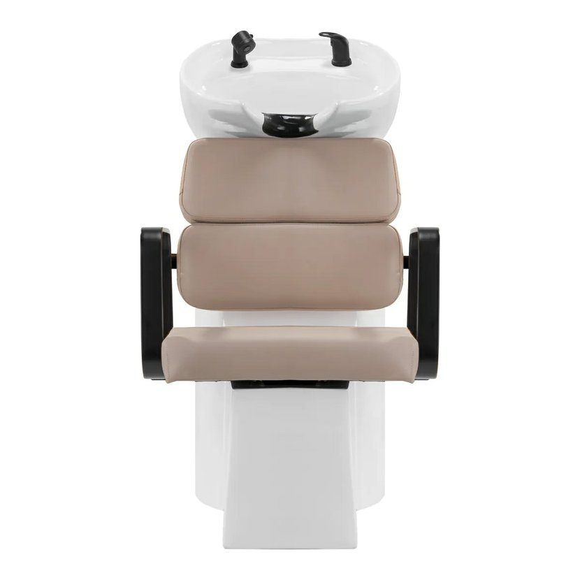 Praktický mycí box je vybaven směšovací baterií, která umožňuje volný přístup k teplé a studené vodě. Díky tomu lze snadno nastavit teplotu podle individuálních preferencí zákazníka. Významnou výhodou tohoto modelu je otvor ponechaný mezi opěradlem a sedákem, který usnadňuje udržování čistoty v salonu a umožňuje snadné vymetení nečistot z každého zákoutí křesla. Mycí box je vyprofilován tak, aby zajistil pohodlí při různých procedurách a zaručil správnou oporu zad. Díky kombinaci funkčnosti a komfortu je práce v kadeřnickém salonu ještě pohodlnější.