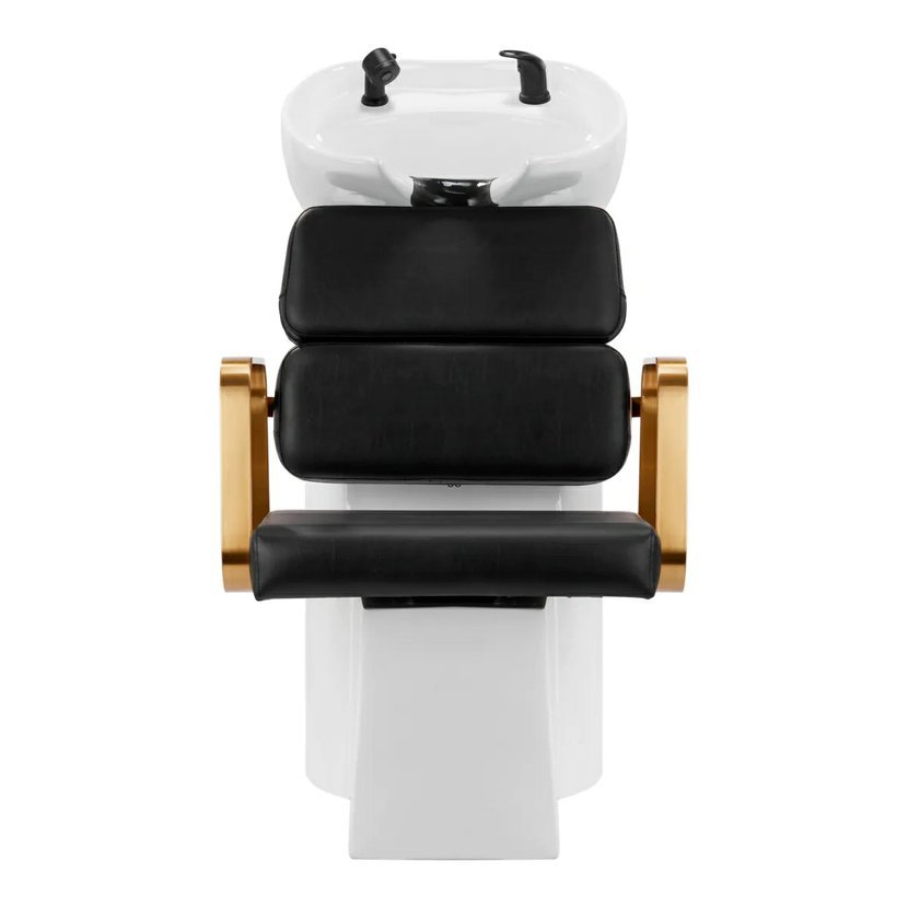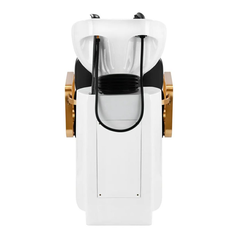 Praktický mycí box je vybaven směšovací baterií, která umožňuje volný přístup k teplé a studené vodě. Díky tomu lze snadno nastavit teplotu podle individuálních preferencí zákazníka. Významnou výhodou tohoto modelu je otvor ponechaný mezi opěradlem a sedákem, který usnadňuje udržování čistoty v salonu a umožňuje snadné vymetení nečistot z každého zákoutí křesla. Mycí box je vyprofilován tak, aby zajistil pohodlí při různých procedurách a zaručil správnou oporu zad. Díky kombinaci funkčnosti a komfortu je práce v kadeřnickém salonu ještě pohodlnější.