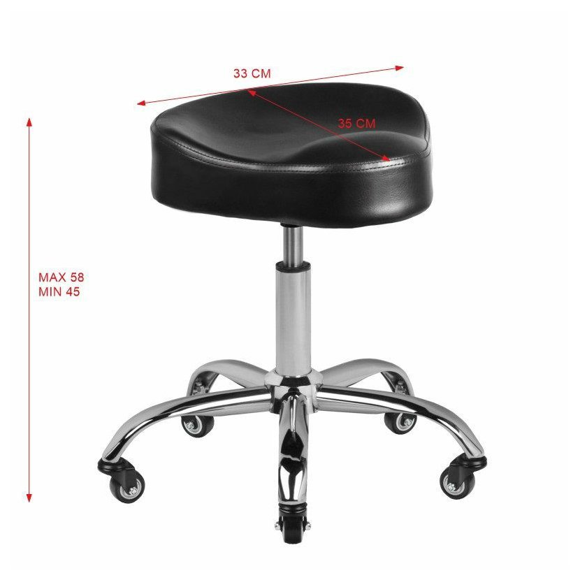 Pohodlný a funkční kadeřnický taburet Gabbiano. Taburet je vyroben z kvalitních materiálů a dokonale propracován. Pro snadnou údržbu je očalouněn kvalitní ekokůží černé barvy, což je navíc i velmi praktické. Víme, jak důležitý je komfort práce, proto je sedlo měkké a mimořádně pohodlné. Taburet by neměl chybět v žádném kosmetickém nebo kadeřnickém salonu.