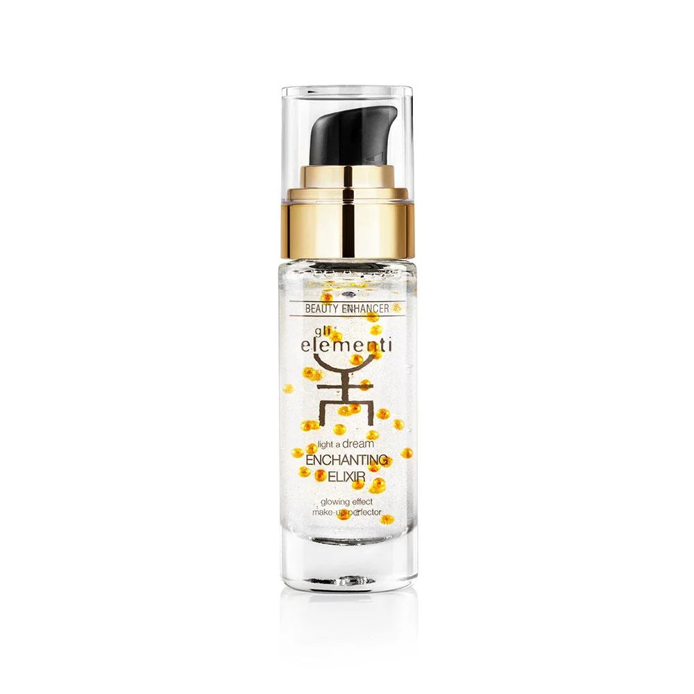 Enchanting elixir je vysoce inovativní produkt s okamžitě zvlhčujícím a osvěžujícím účinkem. Hydrogel s přítomností velmi zvláštních rozjasňujících mikrokuliček, které se při aplikaci „lámou“ a poskytují mimořádný jas.