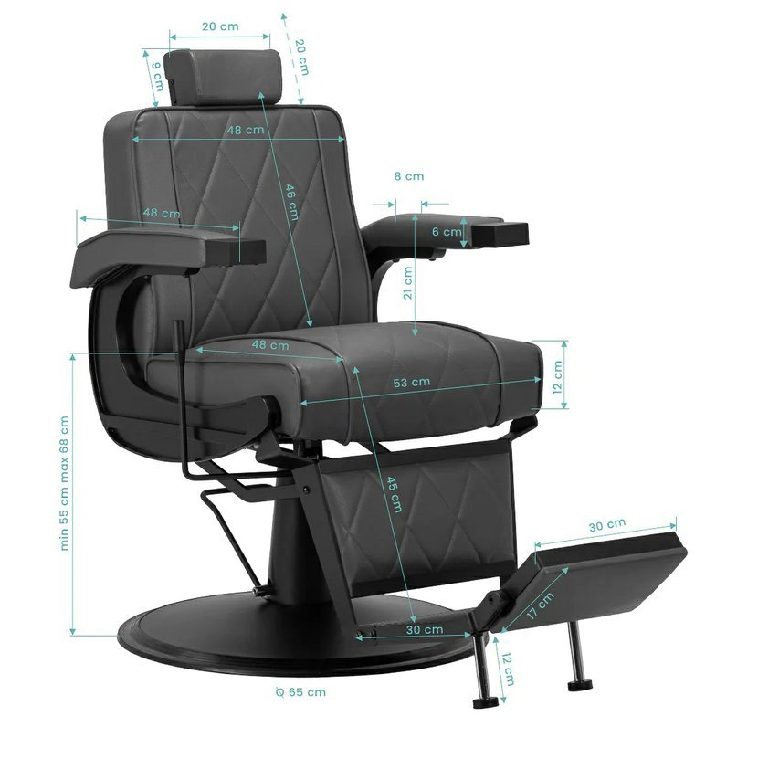 Jedná se o moderní, dokonale zpracovaný kus nábytku, který zákazníkovi, který navštíví Váš barber salon dopřeje maximální pocit pohodlí při prováděných ošetřeních. Křeslo má kromě seřízení nahoru-dolů sklopné opěradlo, polohovatelnou podnožku a opěrku hlavy. I přes malé rozměry je možné klienta umístit do pohodlné, polohovatelné polohy. Pohodlné sedadlo je potaženo kvalitní ekokůží.