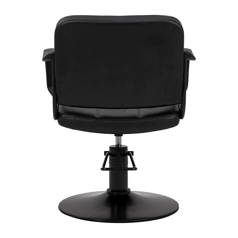 Pevná kulatá základna křesla zajišťuje stabilitu při používání a její hladký povrch usnadňuje udržování čistoty. Estetické a ergonomicky navržené područky jsou umístěny ve správné výšce, což umožňuje klientovi správné držení ramen – nezvedá je k uším ani se nehrbí. Díky tomu probíhají procedury, včetně stříhání, plynuleji a kadeřník má možnost precizní práce při zachování komfortu klienta v každé fázi služby.