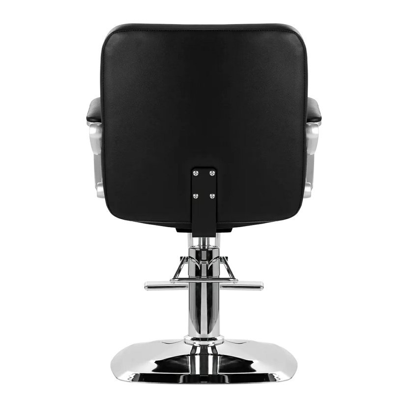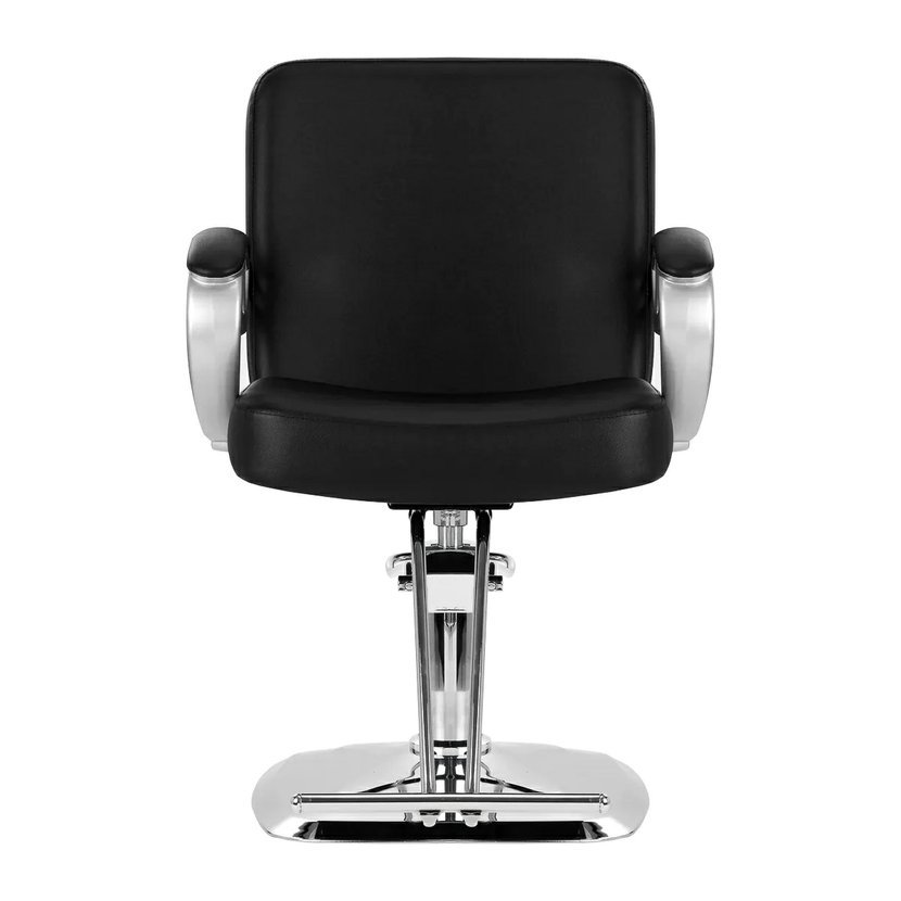 Robustní základna zajišťuje stabilitu při používání a její povrch s lesklým povrchem se snadno udržuje v čistotě. Pohodlné sedadlo je vyplněné odolnou pěnou, která zajišťuje vysoký komfort používání i během kadeřnických úkonů. Částečně čalouněné područky jsou vizuálně zajímavým prvkem a díky vhodnému tvarování umožňují správnou polohu ramen klienta, což výrazně usnadňuje provádění precizních úkonů včetně stříhání. Díky plně otočnému mechanismu křesla je práce kadeřníka efektivnější a pohodlnější.
