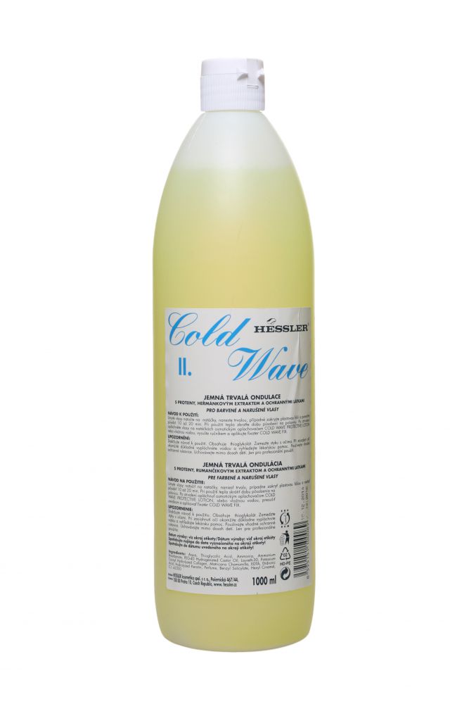 Hessler Cold Wave II. je jemná trvalá ondulace s obsahem proteinových derivátů a heřmánkového extraktu pro barvené a narušené vlasy.