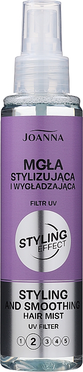 Joanna stylingová mlha poskytuje přirozený a jemný fixační efekt, dodává objem, hladkost a lesk. Obsahuje UV filtr a aktivní složky, které chrání vlasy před škodlivými vnějšími faktory.