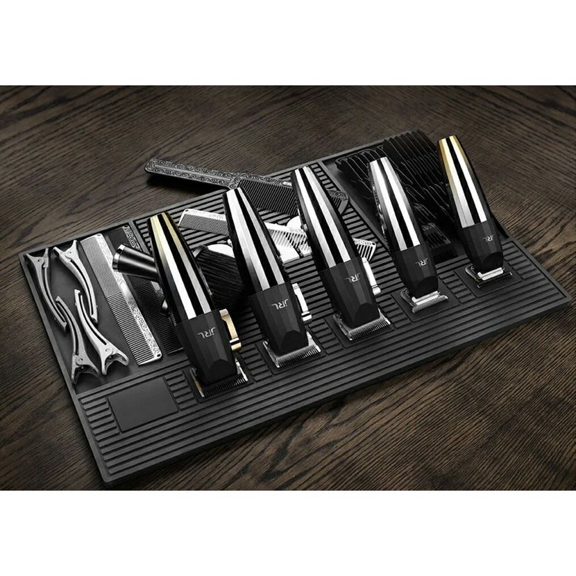 Černá magnetická podložka od značky JRL. Vhodná pro barber nástroje. Zabraňuje odření nástrojů i pracovní plochy. Protiskluzový materiál je zároveň odolný a snadno omyvatelný. 6 magnetických obdélníků na podložce slouží k efektivnímu odkládání strojků.
