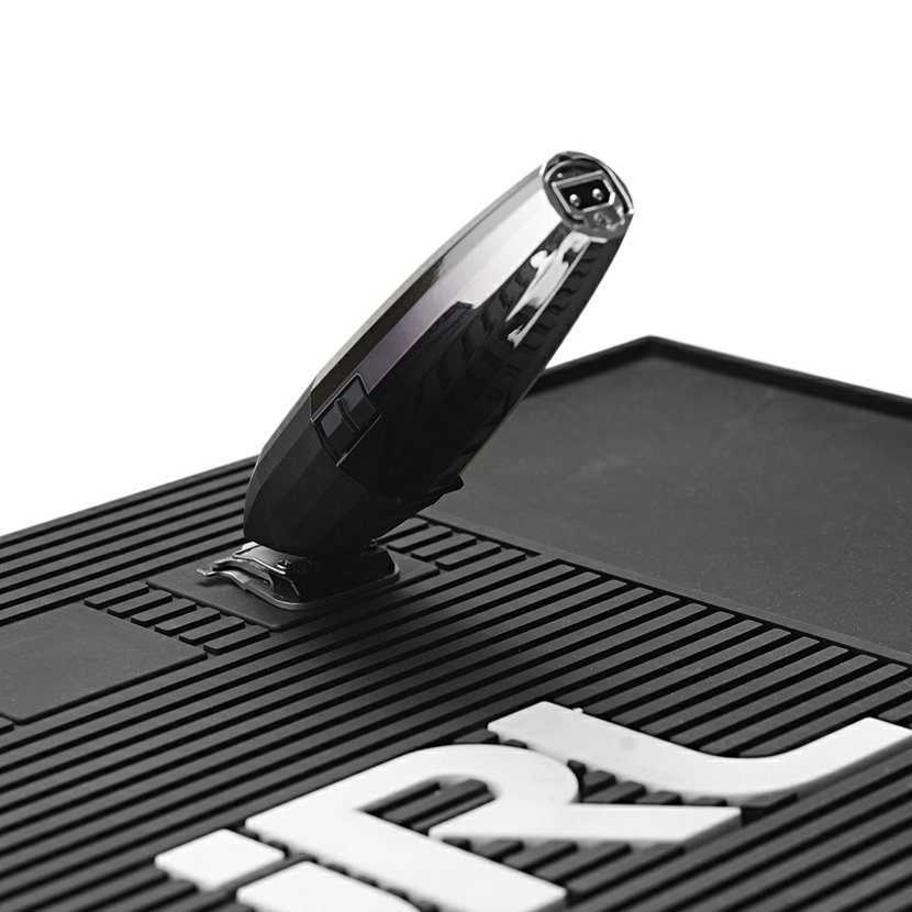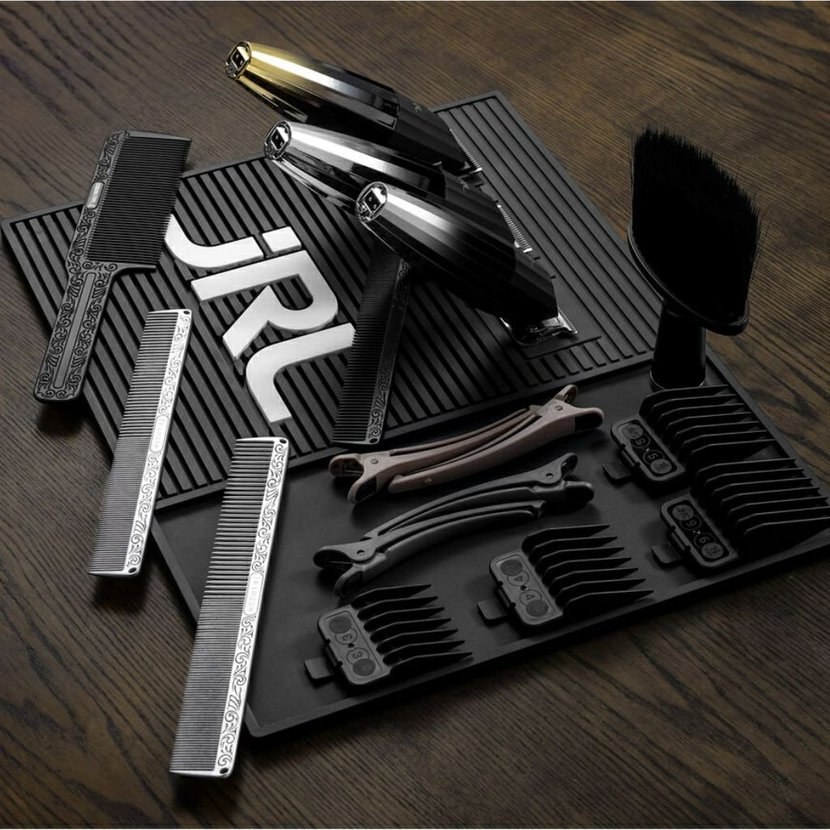 Černá magnetická podložka od značky JRL. Vhodná pro menší barber nástroje. Zabraňuje odření nástrojů i pracovní plochy. Protiskluzový materiál je zároveň odolný a snadno omyvatelný. 3 magnetické obdélníky na podložce slouží k efektivnímu odkládání strojků.