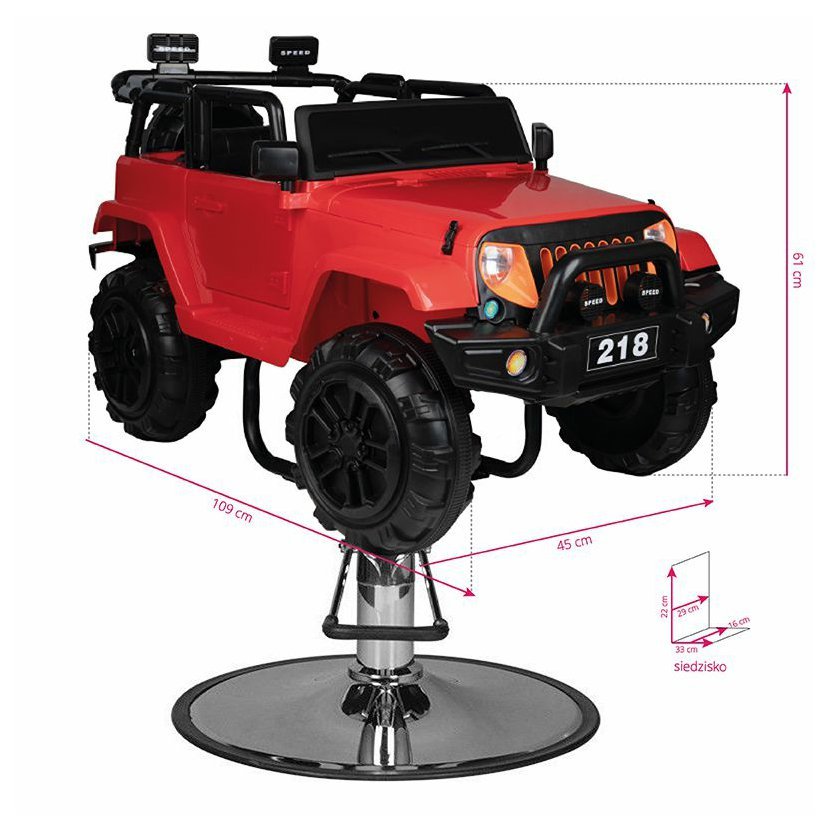 Od nynějška už nemusí být návštěva kadeřnictví s vaším dítětem spojena s pláčem a povykem. Když si náš malý zákazník sedne na tuto židli, bude nadšený a návštěva kadeřnictví se změní v zajímavé dobrodružství. Židle je velmi stabilní a bezpečná, má hydraulické nastavení výšky a je velmi pohodlná jak pro našeho malého zákazníka, tak pro kadeřníka.