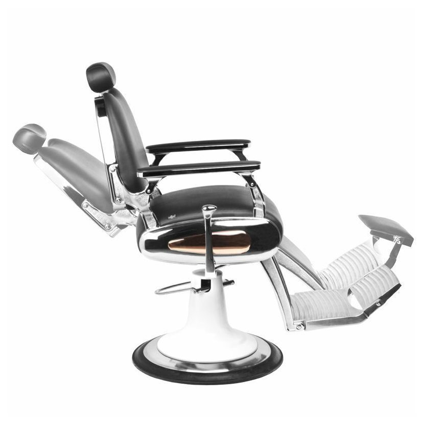 Nabízíme Vám holičské, barber křeslo Moto Style kombinující originální styl s funkčním řešením. Velmi oblíbený model barber křesla, které splňuje ty nejvyšší požadavky barberů. Čalounění je vyrobeno z vysoce kvalitní ekologické kůže. Konečně se nemusíte vzdávat poutavého nábytku díky jeho barvě. Jistě si vyberete barvu, která se bude nejlépe hodit ke stylu interiéru vašeho barber salonu. Moderní kus nábytku vybavený účinným hydraulickým zdvihem, nastavitelným opěradlem a podhlavníkem. Křeslo disponuje také podnožníkem. Bohaté možnosti nastavení umožňují dokonalé přizpůsobení křesla k prováděným ošetřením, což výrazně zvyšuje komfort služeb. Estetické provedení učiní z křesla ozdobu každého holičského salonu a jeho vysoká funkčnost zajistí komfort a efektivitu práce.