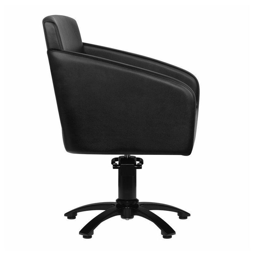 Kadeřnické křeslo Bergen Velmi pohodlné, dokonale ladí s interiéry elegantních salonů. Nastavitelné ve svislé rovině pomocí hydraulické báze. Velmi stabilní a pevné, čalounění je vyrobeno z kvalitní černé kůže, která je praktická snadno se čistí. Díky celočernému provedení je velmi zajímavým doplňkem Vašeho salonu.