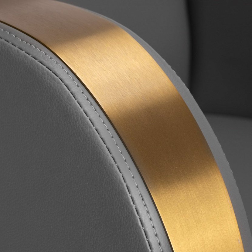 Křeslo je vyplněno pěnou, která je odolná a nedeformuje se a zajišťuje pohodlné používání po dlouhou dobu. Čalounění je vyrobeno z na dotek příjemné imitace kůže se specifickou strukturou. Díky použití takového materiálu je zařízení odolné proti vlhkosti, odolné a snadno se čistí . Potah v odstínech černé a ozdobné kovové povrchy lakované ve zlatých barvách mu dodávají výraz nadčasové elegance . Díky výrazné klasické povrchové úpravě vypadá skvěle téměř v každém prostoru.