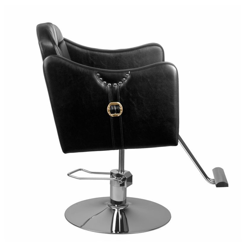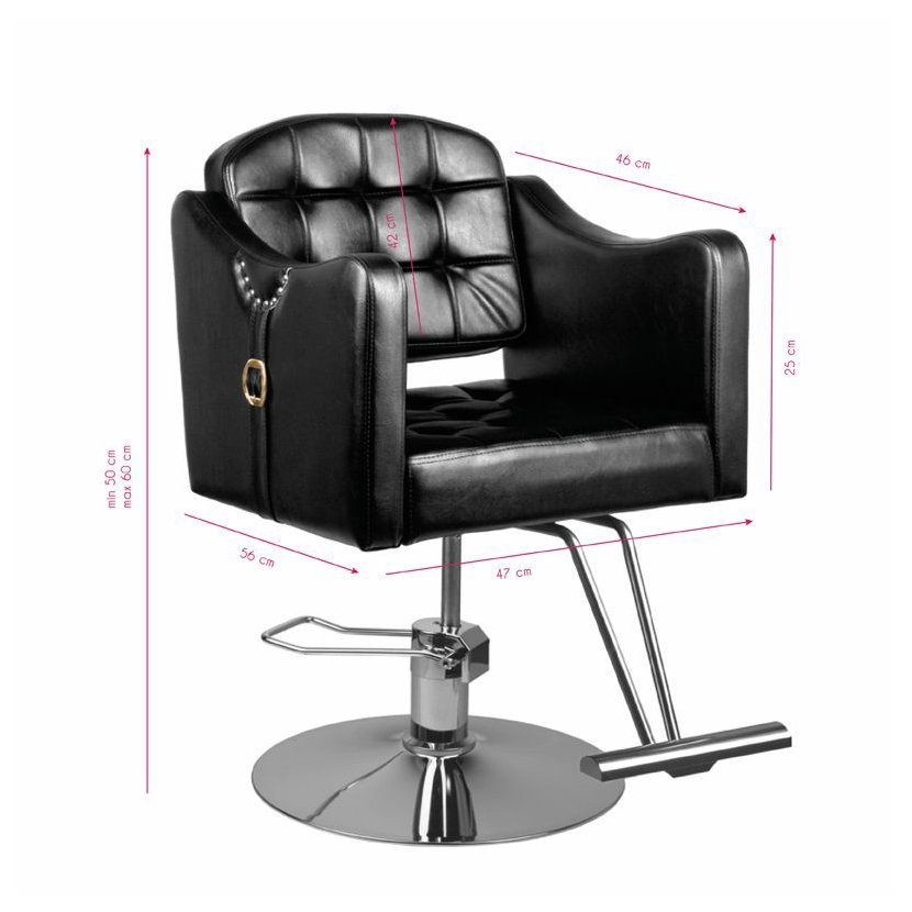 Stylové kadeřnické křeslo značky Hair System. Elegantní a velmi pohodlné díky kvalitnímu polstrování. Pevný chromovaný podstavec zaručuje stabilitu křesla. Potah je vyroben z vysoce kvalitní ekokoženky. Židle je nastavitelná nahoru a dolů díky hydraulické bázi. Podnožník který není nutno montovat. Klasické kadeřnické křeslo které je vhodné do všech kadeřnictví ale také do větších kadeřnických salónů.