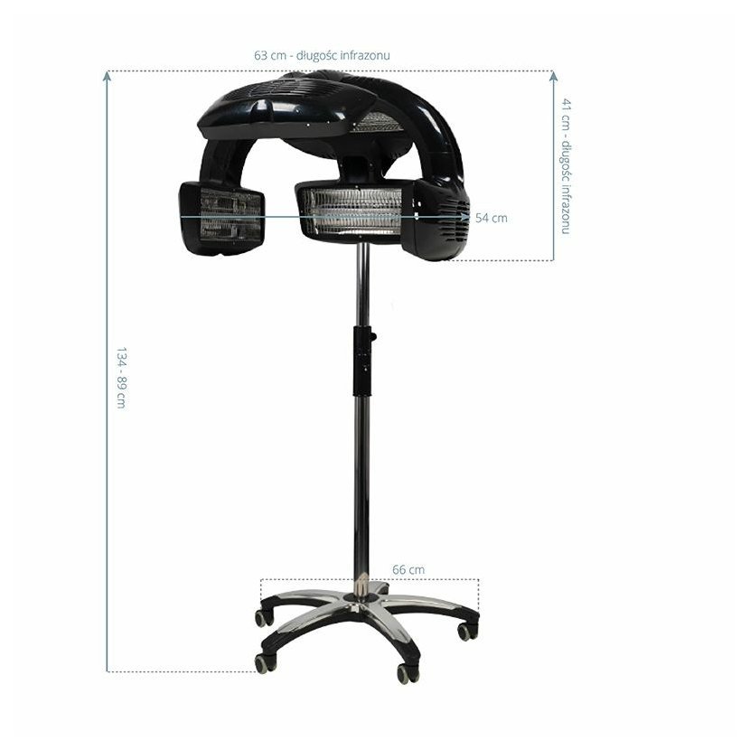 Infrazon pro kadeřnický salon s 5 žhavícími hlavami. Má elektronický panel pro snadné nastavení parametrů. Je umístěn na stativu s kolečky, jehož výška je nastavitelná. S tímto designovým přístrojem výrazně zkvalitníte a rozšíříte služby ve Vašem salonu. Přístroj dokáže urychlí proces barvení, zesvětlování nebo trvalé. Je perfektním pomocníkem při regeneracích vlasů, nebo při dnes velmi oblíbeném čištění vlasů.