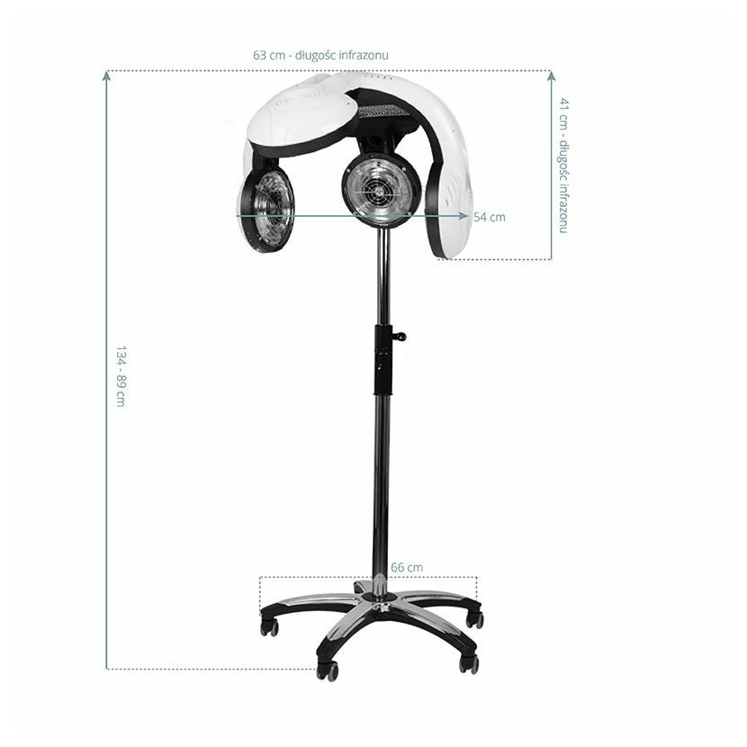 Infrazon pro kadeřnický salon s 5 žhavícími hlavami a 4. ventilátory Má elektronický panel pro snadné nastavení parametrů. Je umístěn na stativu s kolečky, jehož výška je nastavitelná. S tímto designovým přístrojem výrazně zkvalitníte a rozšíříte služby ve Vašem salonu. Přístroj dokáže urychlí proces barvení, zesvětlování nebo trvalé. Je perfektním pomocníkem při regeneracích vlasů, nebo při dnes velmi oblíbeném čištění vlasů.
