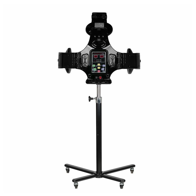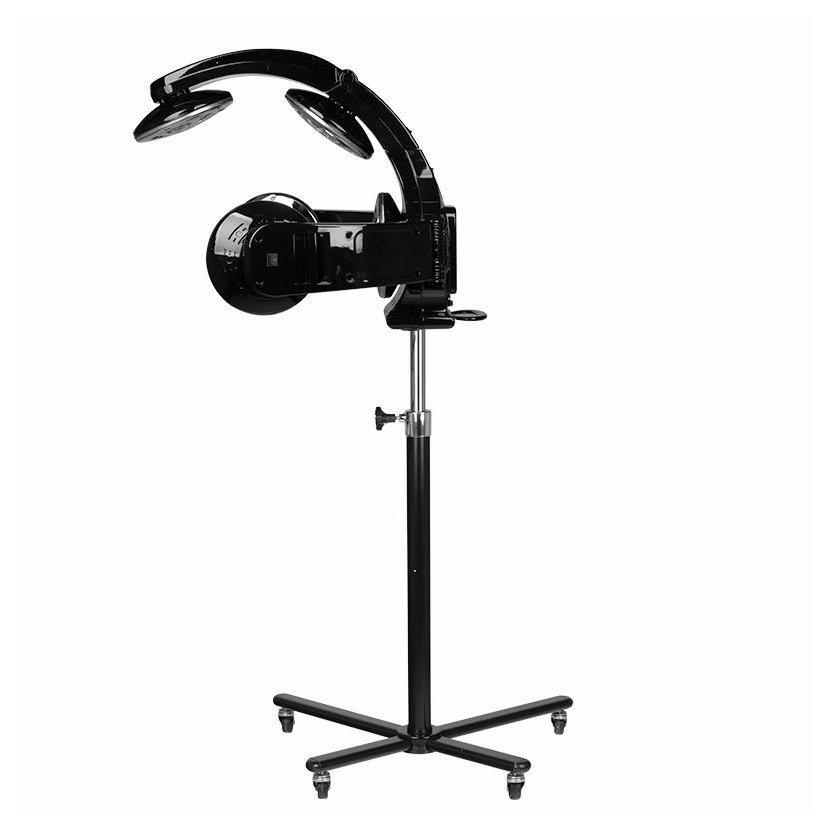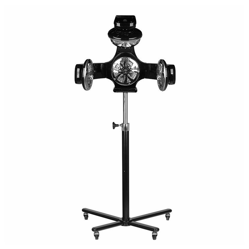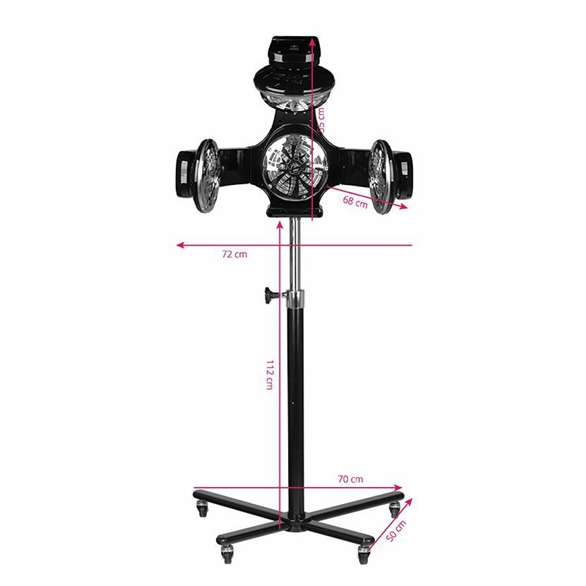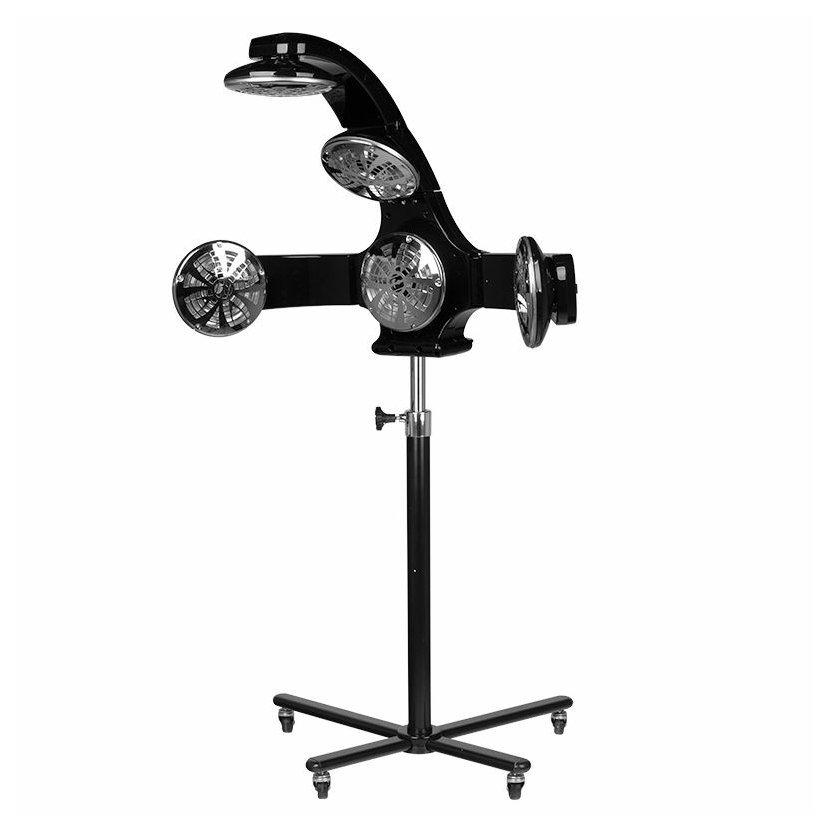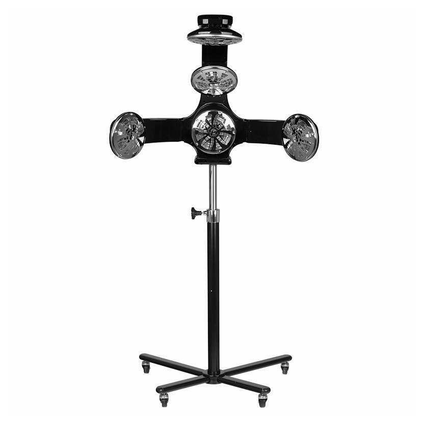 Infrazon pro kadeřnický salon s 5 žhavícími hlavami a 5. ventilátory Má elektronický panel pro snadné nastavení parametrů. Je umístěn na stativu s kolečky, jehož výška je nastavitelná. S tímto designovým přístrojem výrazně zkvalitníte a rozšíříte služby ve Vašem salonu. Přístroj dokáže urychlí proces barvení, zesvětlování nebo trvalé. Je perfektním pomocníkem při regeneracích vlasů, nebo při dnes velmi oblíbeném čištění vlasů.