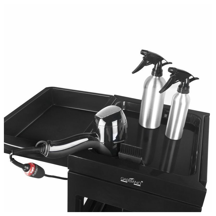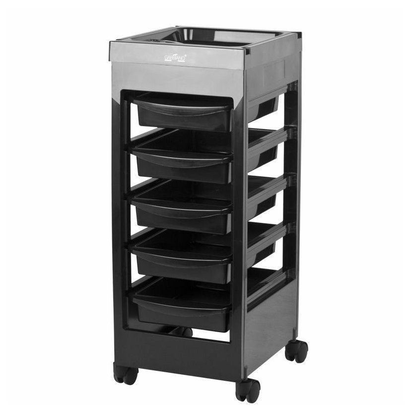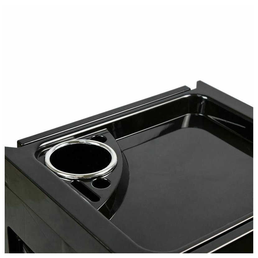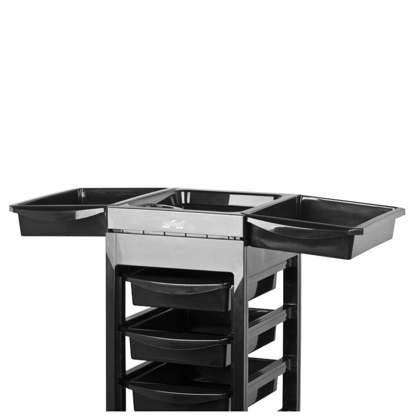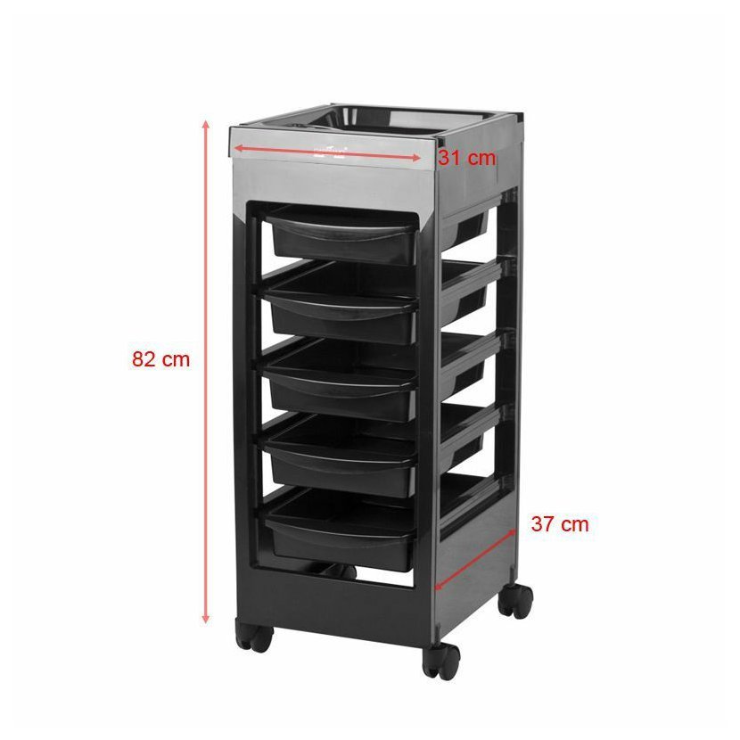 Oboustranný kadeřnický pomocník v černé barvě, má 5 šuplíků a přihrádky na kadeřnický sortiment. Stabilní konstrukce zajistí dlouhodobé používání. Vozí má kolečka, díky kterým bude nářadí vždy po ruce. Pomocník v dílech pro svépomocnou montáž. Vozík je vyroben z vysoce kvalitního ABS plastu.