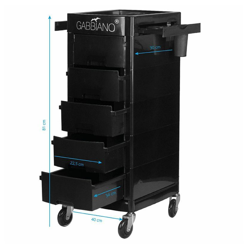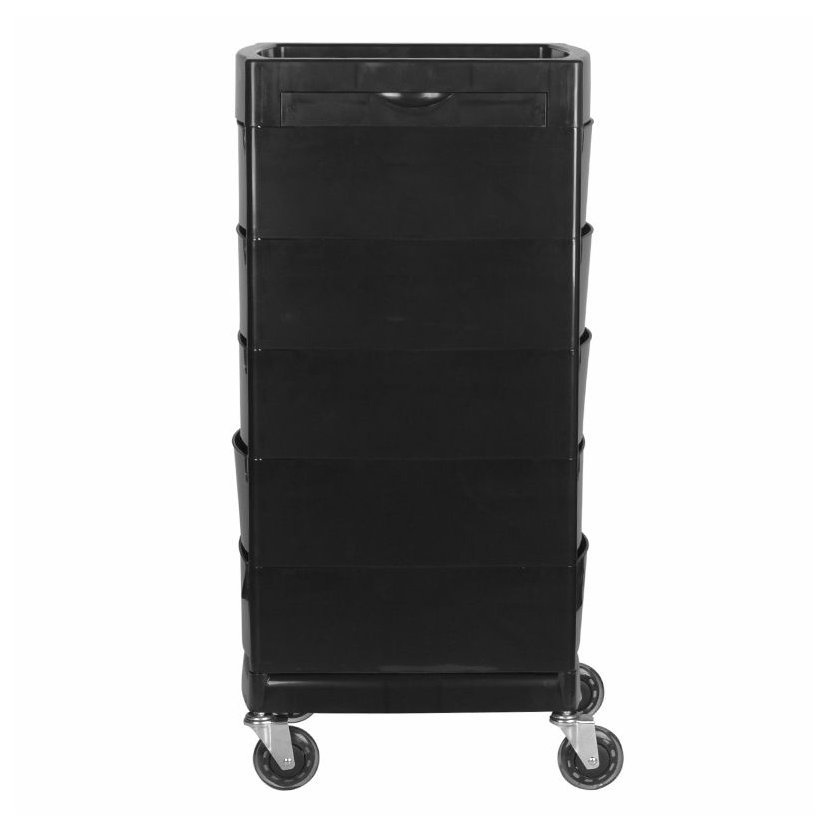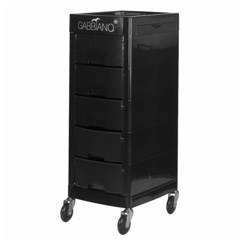 Kadeřnický odkládací stolek je kvalitní kus nábytku, který byl vyroben z odolného plastu ABS s ocelovou rámovou konstrukcí zajišťující vysokou stabilitu a odolnost. Stolek je opatřen gumovými kolečky, takže je mobilní a snadno se s ním manipuluje. 5 zásuvek vám zajistí dostatek úložného prostoru pro vaše kadeřnické pomůcky. Klasická černá barva je vhodná do každého moderního salonu.