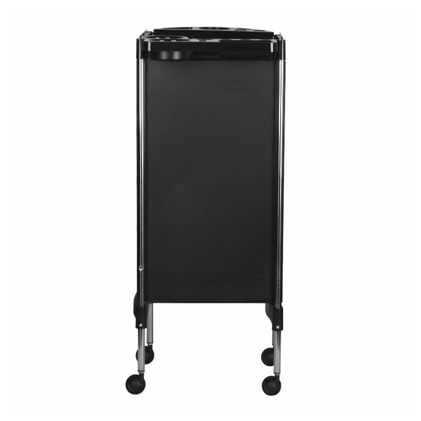 Odkládací stolek je vyroben z odolného plastu ABS s ocelovou rámovou konstrukcí zajišťující vysokou stabilitu a odolnost. Stolek je opatřen gumovými kolečky, takže je mobilní a snadno se s ním manipuluje. 5 výsuvných zásuvek vám zajistí dostatek úložného prostoru pro vaše profesní pomůcky. Černá barva je vhodná do každého moderního salonu, snadno se udržuje v čistotě.